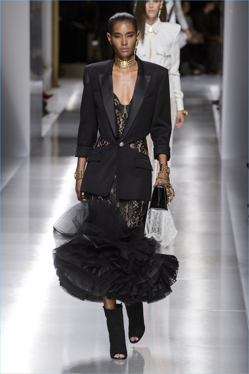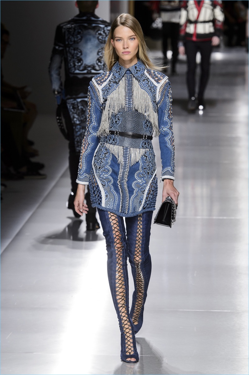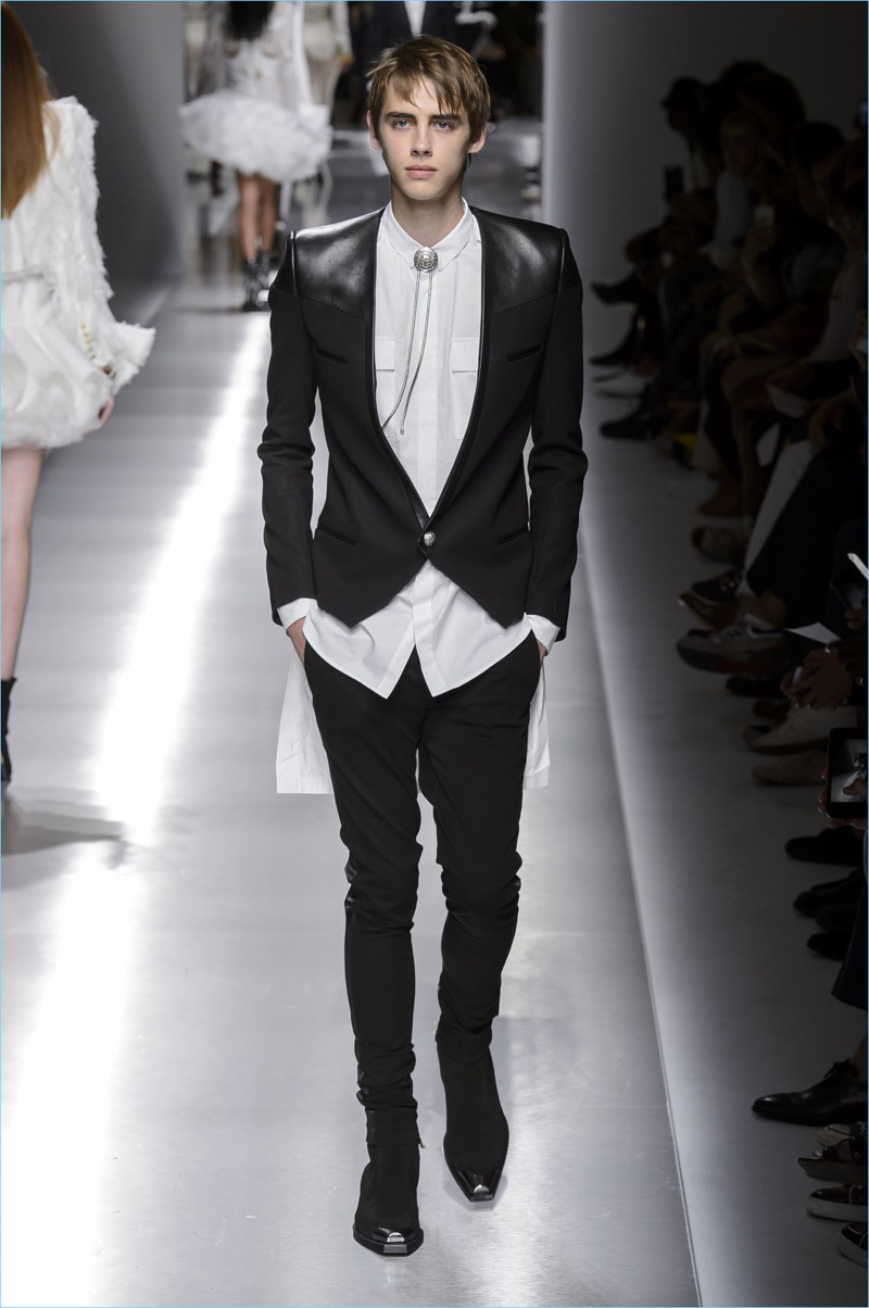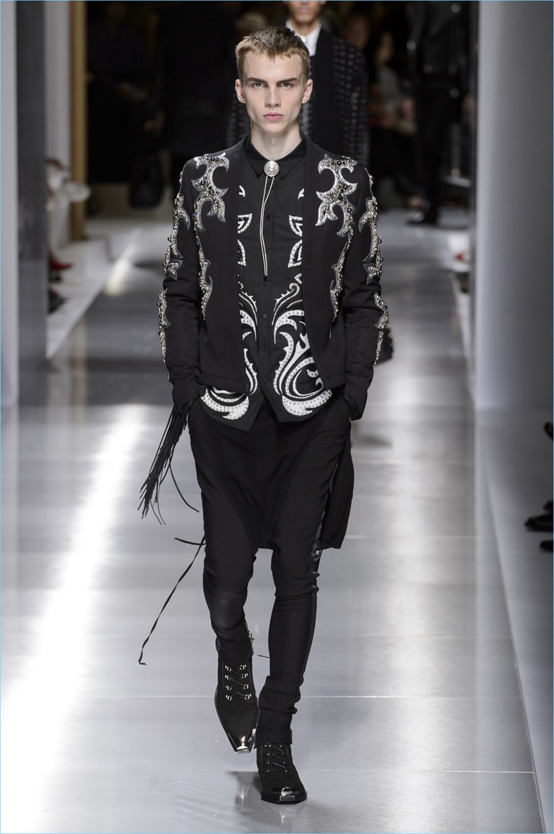 Balmain offers a formal spin on western style for its spring-summer 2018 collection.