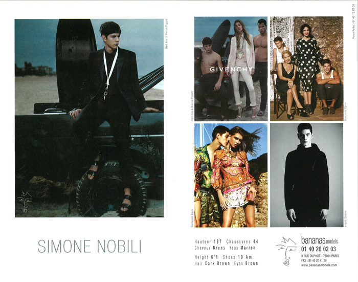 Bananas–Pillars of the runway, legends, it boys, the quirky personality…you name it and Bananas has it. The Paris-based modeling agency is gearing up for Paris Fashion Week spring/summer 2013 and no one stands in their path. On the icon front, they host the arresting personas of both Tony Ward and Andre Van Noord. Step into the arena of those boys you cannot have a runway show without and there is Nicolas Ripoll, Alexander Beck, Jakob Hybholt and Jacob Coupe, among others. Ask yourself what up and comers have buzz right now and Bananas has campaign favorite Simone Nobili and editorial darling Jake Shortall. Then coming up in the ranks, there are impeccable new faces Ysham Jackson, William Jagnow and countless others ready to make a splash.
