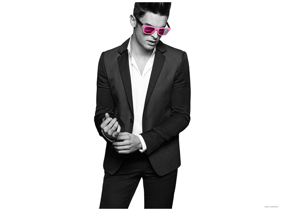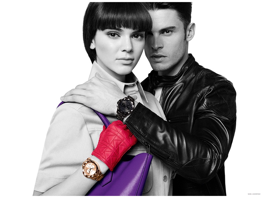 Karl Lagerfeld muse Baptiste Giabiconi joins reality television star Kendall Jenner in the designer’s spring-summer 2015 advertising campaign. Posing for black & white images, a pop of color is added with the season’s fun accessories.