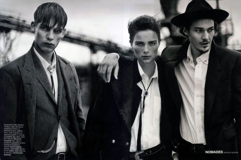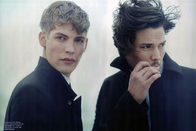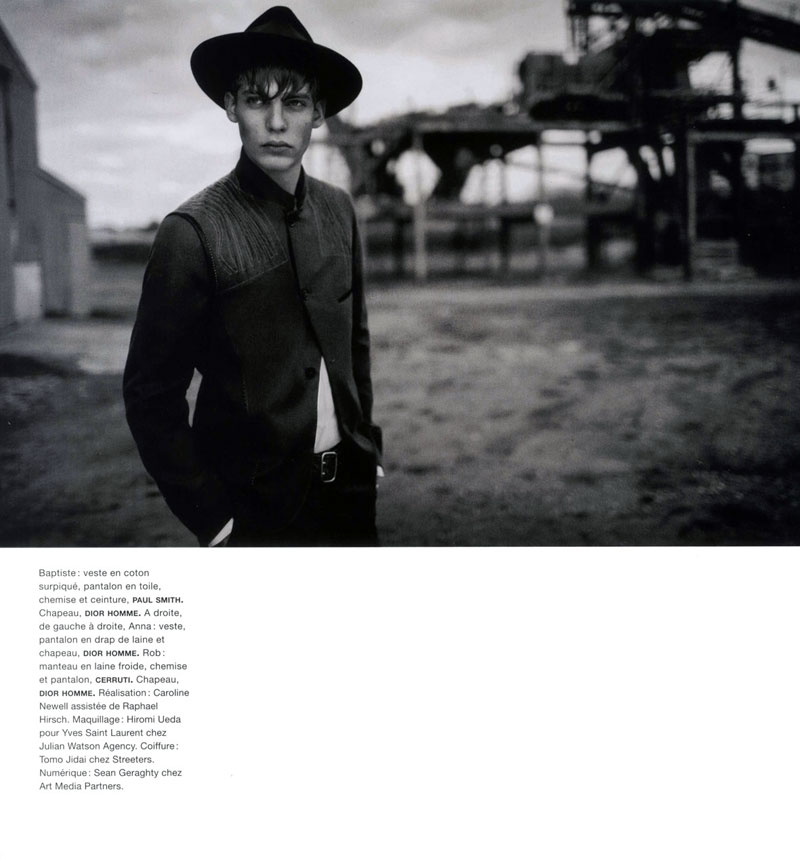 Muddied Glamour–Stylist Caroline Newell connects with photographer Boo George for spring’s edition of French magazine Numéro Homme. Setting their sights on Success model Baptiste Radufe and Select’s Rob Moore, current fashions come together in a subdued nature for a shoot along the shore.