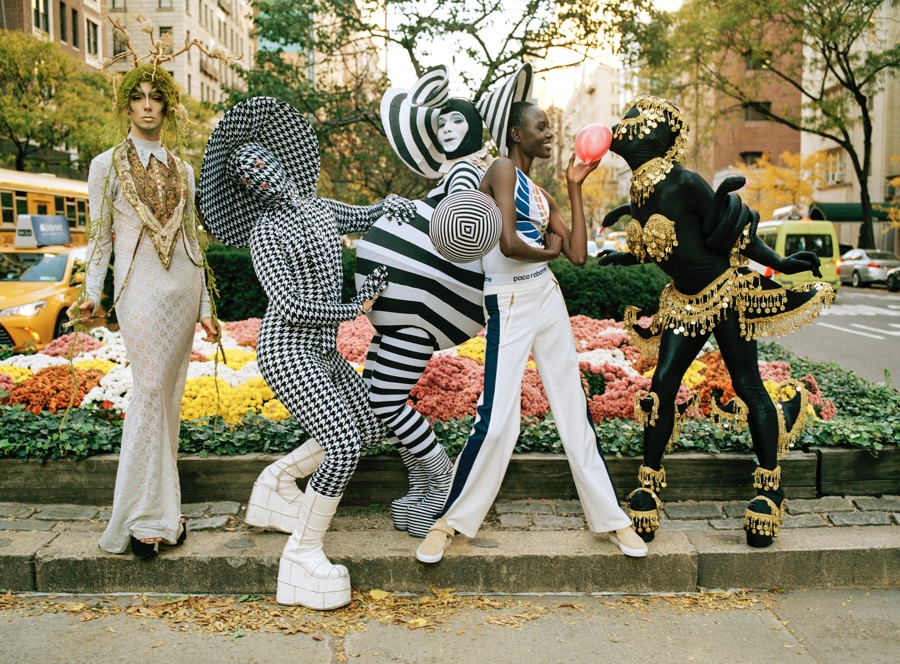 Model Ajak Deng and the Wolfpack photographed by Bruce Weber for Barneys New York’s spring-summer 2016 campaign.