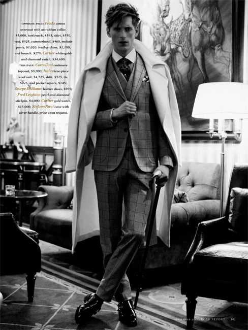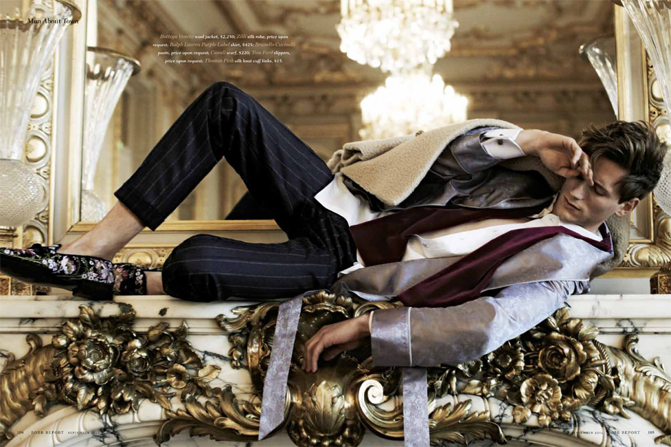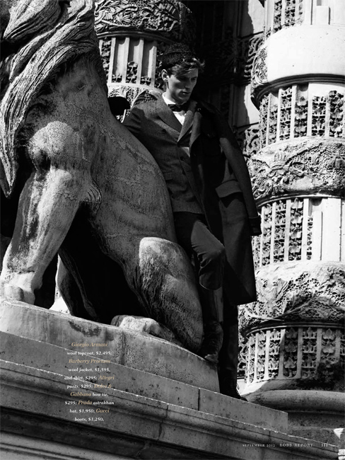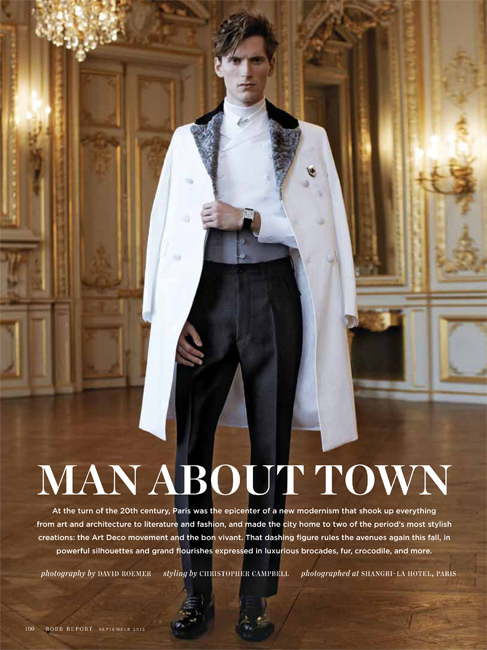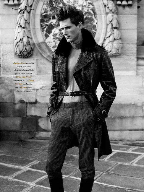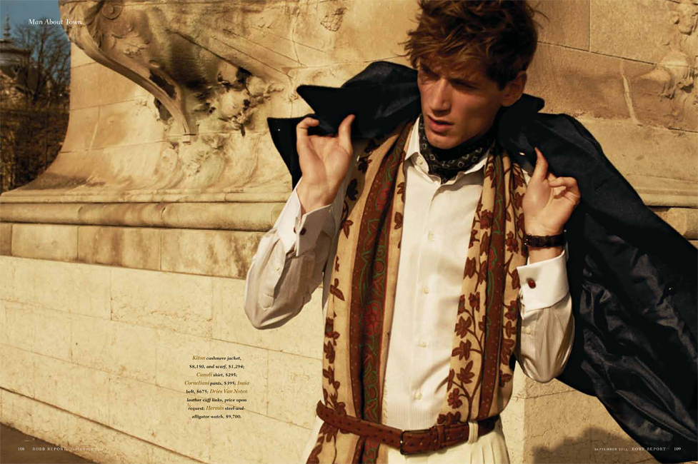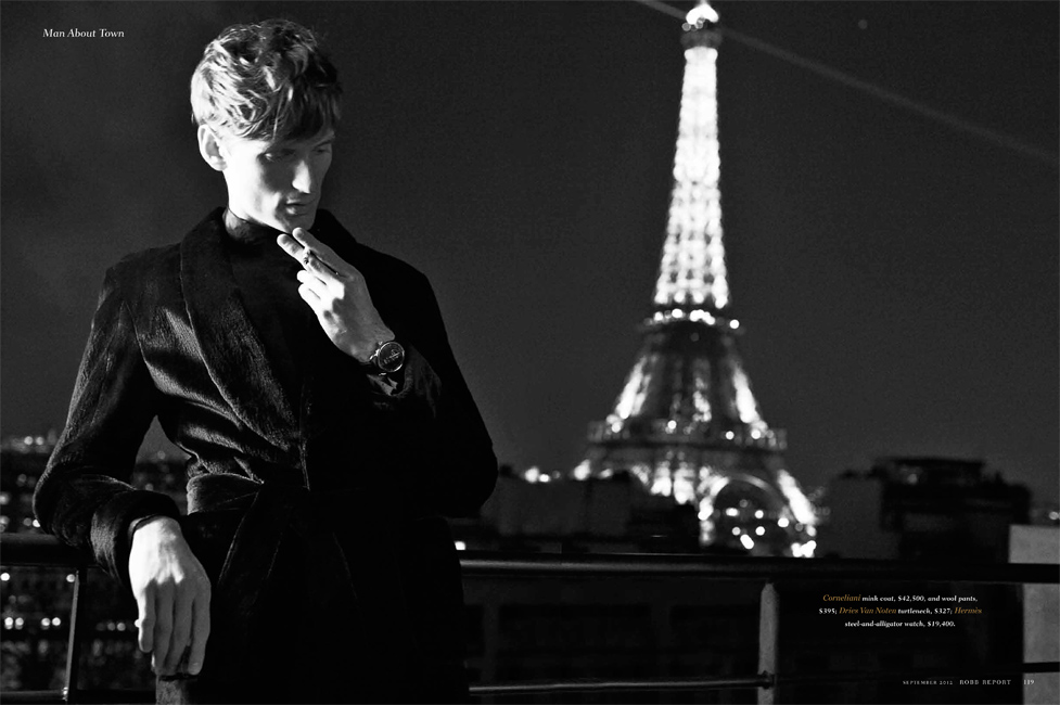 The Parisian Eye–Captured against the beautiful urban backdrop of Paris, Bananas stunner Bastiaan Ninaber is the epitome of timeless chic in the September issue of Robb Report. David Roemer photographs the impeccably polished Bastiaan in a luxurious editorial that exudes a Parisian finesse within the scope of contemporary fashion and culture. Stylist Christopher Campbell works wonders, outfitting Bastiaan in luscious fall fabrics, stately outerwear, and rich suiting by top labels such as Prada, Salvatore Ferragamo, and Tom Ford in a gorgeous spread that defines pure class and poise.