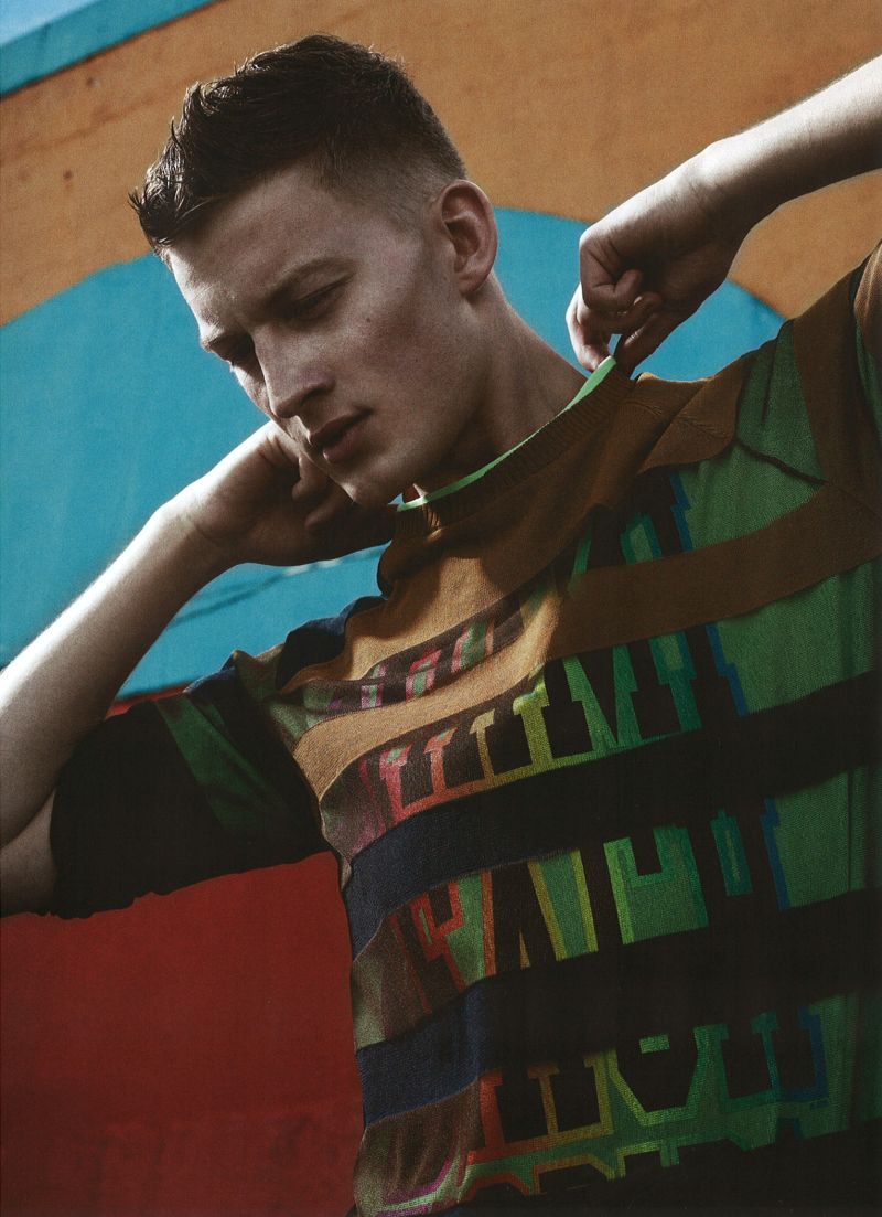 Print Sport–Styled by Sheila Single and taking a sporty approach to fashion, Bastian Thiery appears in the latest edition of Parisian magazine Numéro Homme. Photographed by Greg Harris, the Bananas model is aided in the style department, wearing the bold prints of Dolce & Gabbana, the clean silhouettes of Prada and other pieces from the likes of Givenchy by Riccardo Tisci.