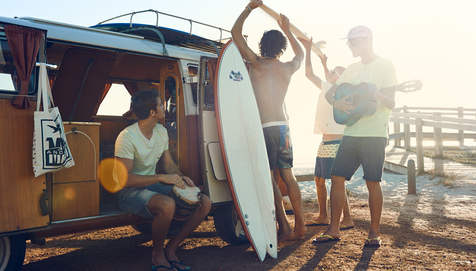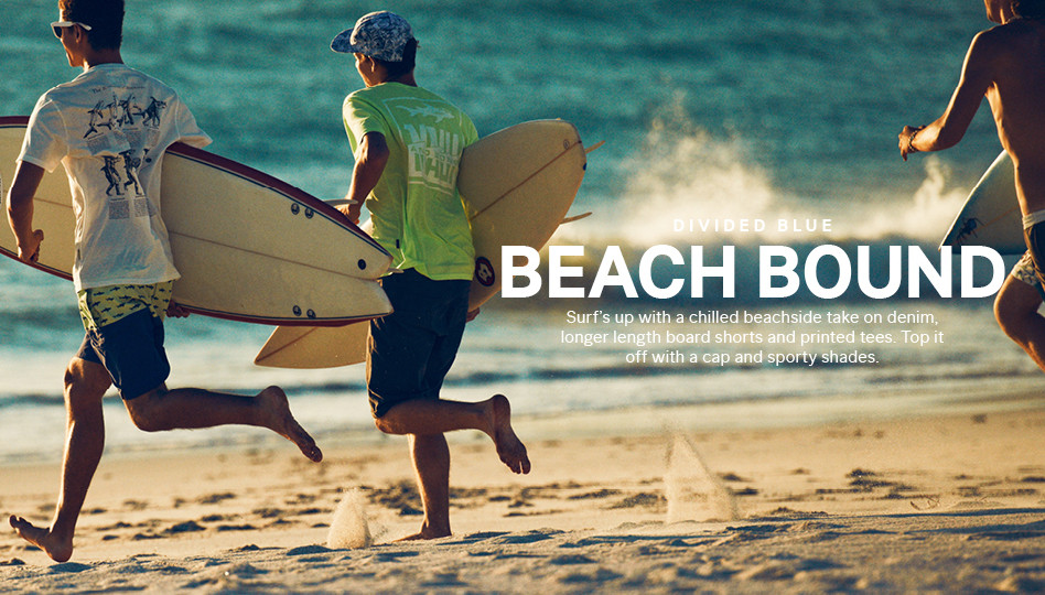 Beach Bound-Swedish label H&M tackles surfer style as it prepares for a season at the beach. Showcasing the latest fashions from Divided Blue, H&M takes a relaxed approach to summer with graphic t-shirts in bright bold colors, swim shorts in fun prints and a mix of accessories, ranging from hats to sunglasses. Surf’s up! Are you ready?