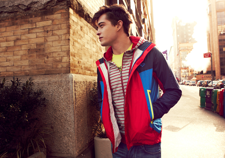 Young & Active–Photographed hitting the streets of New York City, models Francisco Lachowski and Lenz Von Johnston are in a dynamic and athletic mood for Pony’s spring/summer 2013 advertising campaign, captured by photographer Beau Grealy. Stylist Antonio Branco creates a sporty wardrobe where preppy inspired numbers blend with techno fabrics and performing garments, supporting the boys’ active lifestyle in the city.