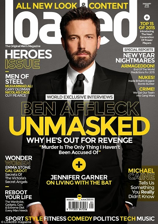 The next actor to step into the giant shoes of Batman in 2016’s Batman v Superman: Dawn of Justice, Ben Affleck covers the January 2015 issue of Loaded magazine. Talking to the British magazine about his relationship with wife Jennifer Garner, Affleck reveals, “Getting to know Jennifer, falling in love with her and being connected with her gave me a foundation to reach out and say, okay, I’m going to do ‘Hollywoodland.’ I’m going to direct ‘Gone Baby Gone.’ Those were the steps forward I needed to put positive stuff on the board.”