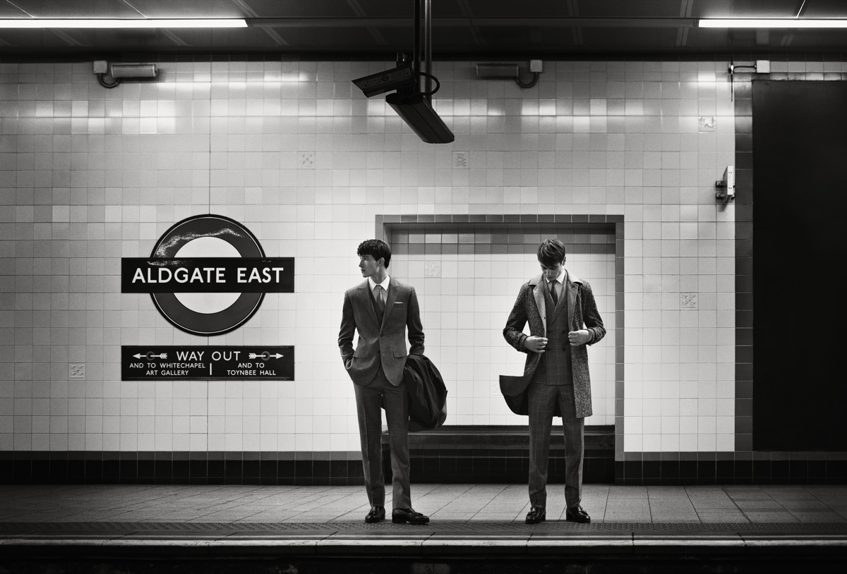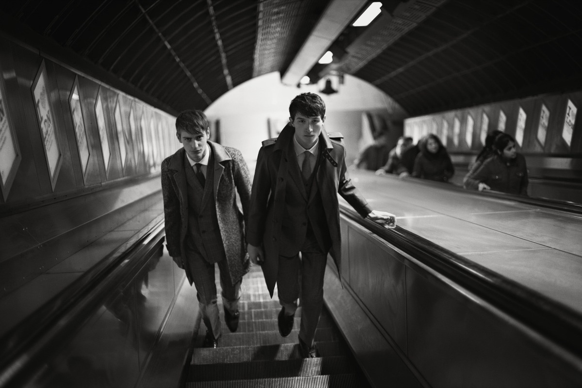 London Dapper–Hardy Amies returns this fall/winter 2013 season with a subdued calm, featuring Select models Ben Allen and Jester White. Photographed by Roger Rich, the campaign journeys through the metropolitan landmarks of London, capturing the quiet moments of urban life.