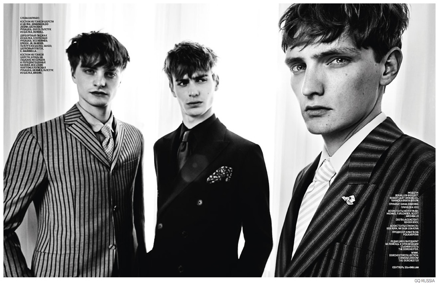 Ben Allen, Robert Laby + Yannick Abrath Don Fall Suiting for GQ Russia September 2014 Issue