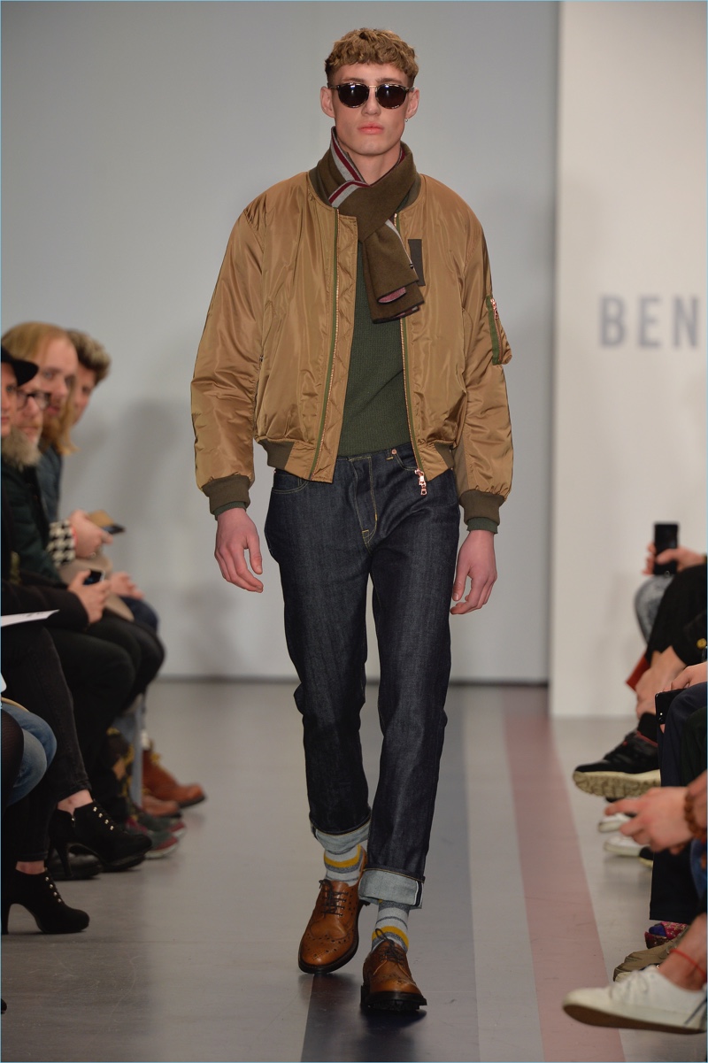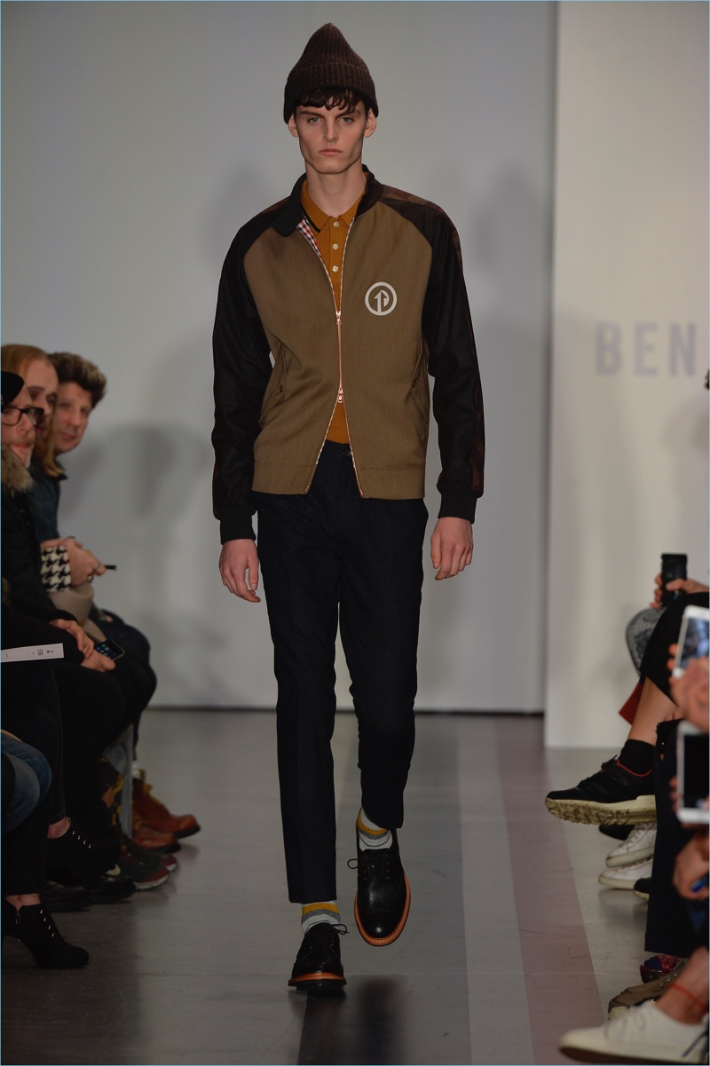 Ben Sherman takes to a rebranded London Fashion Week Men’s to present its fall-winter 2017 men’s collection. The English brand looks to mod style for chic inspiration. Entitled Spirit of Mod, the range features a lineup of signature styles for the season. Hero pieces range from patterned parkas and color blocked knitwear to bomber jackets.