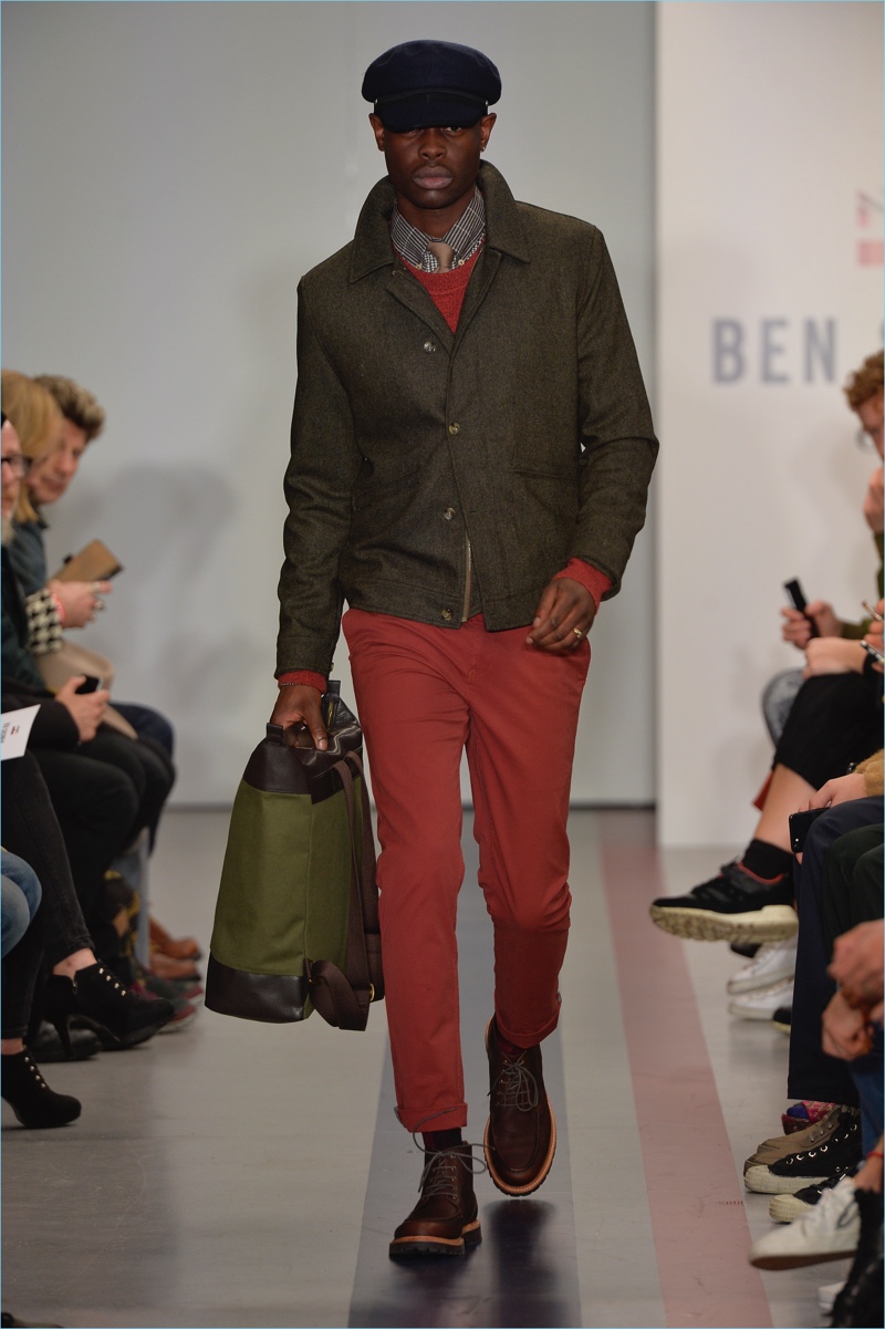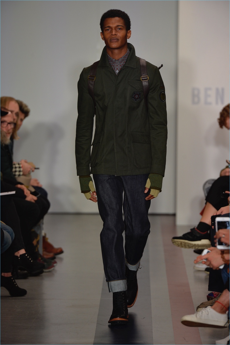 Ben Sherman also revisits the military trend for influence. Army green, brown, and more somber hues contribute to a grounded color palette. Celebrating the season, Ben Sherman taps into the see it, buy it now trend as well. A limited-edition capsule collection includes a selection of five pieces, which are available for purchase on BenSherman.co.uk.