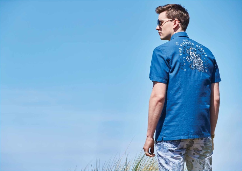 Sid Ellisdon sports a Hawaiian print shirt from Ben Sherman.Pin