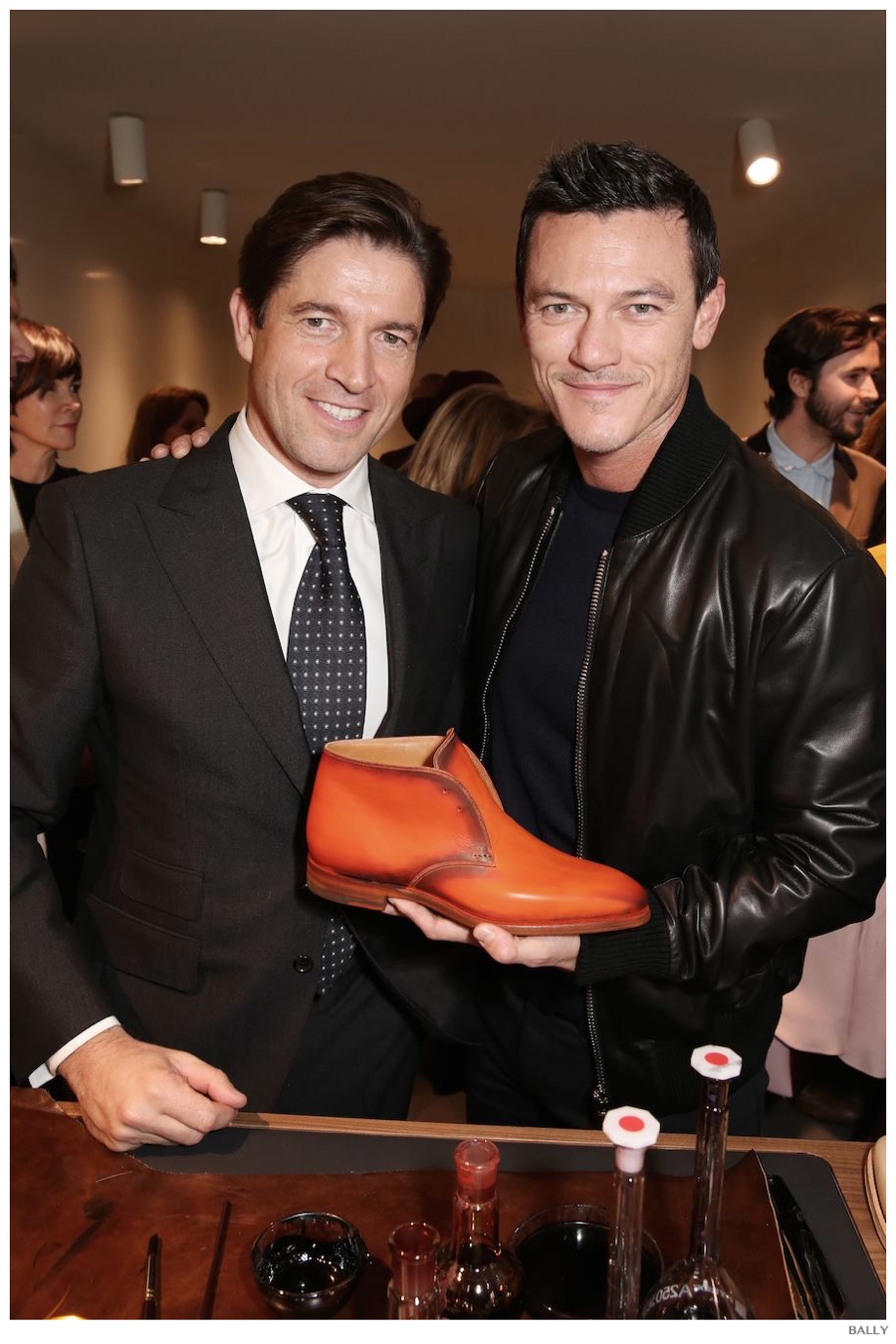 PinShowing off his Bally Made-to-Color shoes, Luke Evans poses with Bally CEO Frédéric de Narp.