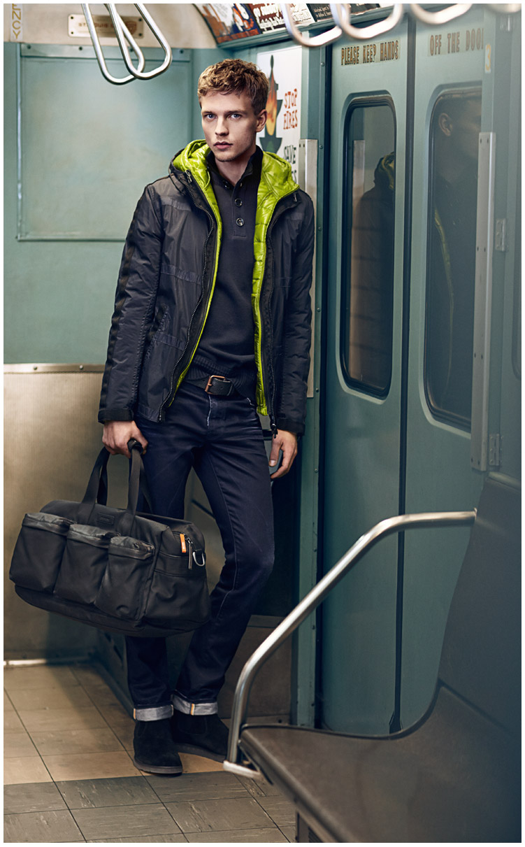 Benjamin In NYC-German label Hugo Boss Orange finds in Swedish model Benjamin Eidem the perfect face to showcase its fall/winter 2013 collection. Captured by the lens of Lachlan Bailey for the brand’s winter advertisements, the blond model hits the city of New York, looking flawless as ever in Hugo Boss Orange’s winter offering. Walking in the streets of the Big Apple wearing leather and tweed, or spending few moments on the subway in jeans and printed tees, Benjamin never fails to impress, thanks to his stunning features.