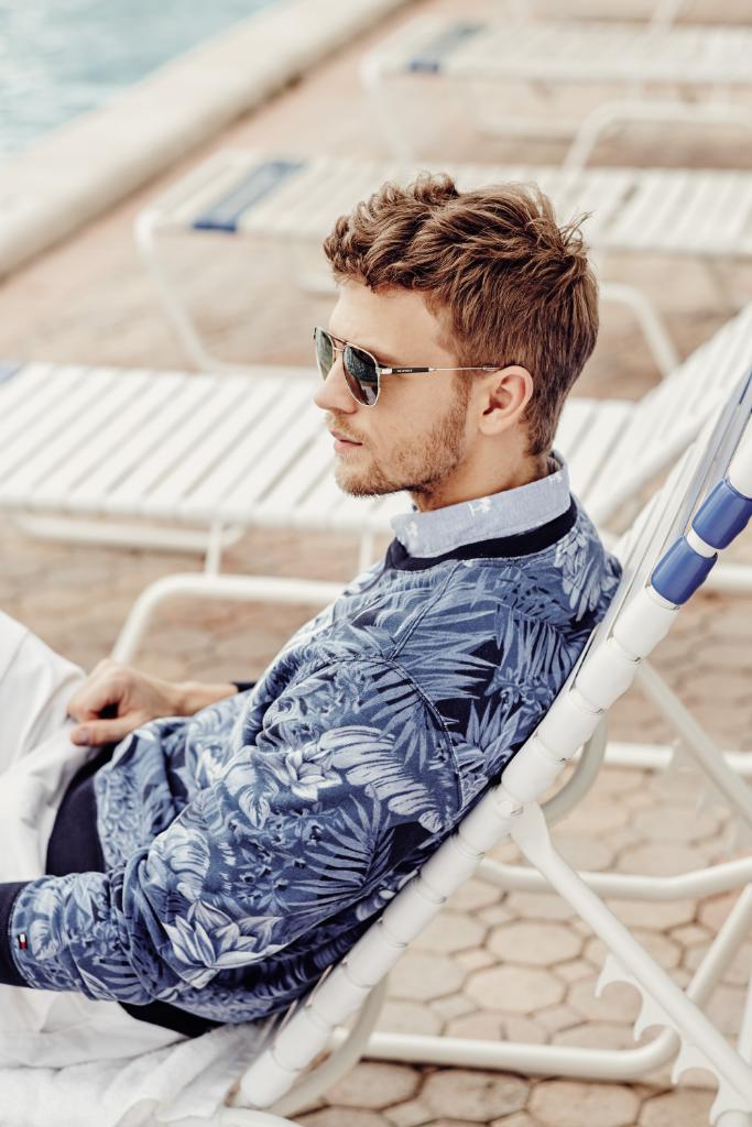 On the heels of a backyard shoot, summer is in full swing as Tommy Hilfiger goes poolside with leading Swedish model Benjamin Eidem. Capturing the relaxed attitude of the season, Benjamin has us dreaming of laid-back days under the sun. Pictured lounging by the pool, Benjamin wears trendy tropical print swim shorts, casual tees, cotton shorts and other warm weather staples.