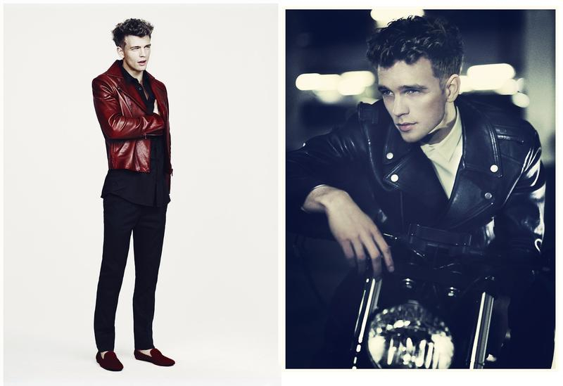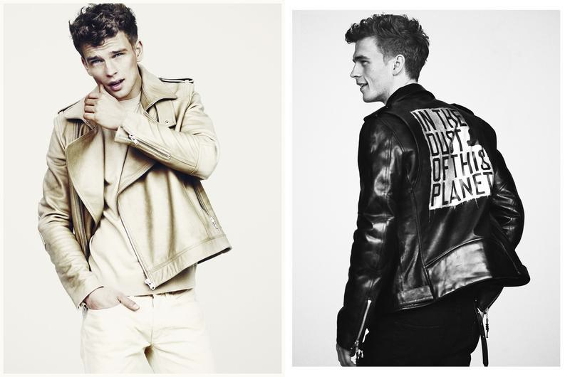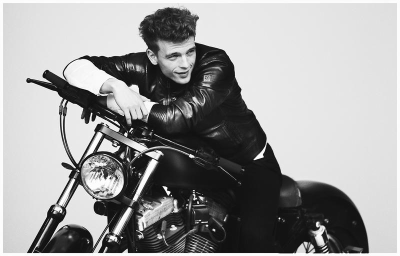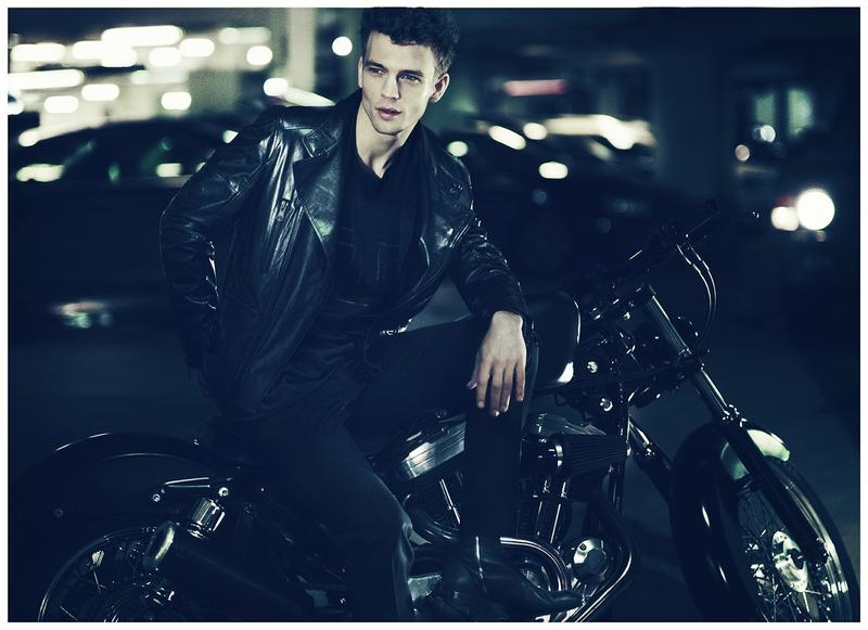 Spring Leather-The last time we checked in with Benjamin Eidem, the model was donning a fine selection of suiting for King magazine, but this time around he shows a cooler edge. Photographed by Andreas Kock for Cafe magazine, Benjamin sports spring leather essentials. Posing on a bike in a parking garage or captured in the studio, Benjamin is styled by Emine Sander, delivering the iconic leather jacket in various colors for the ultimate style statement.