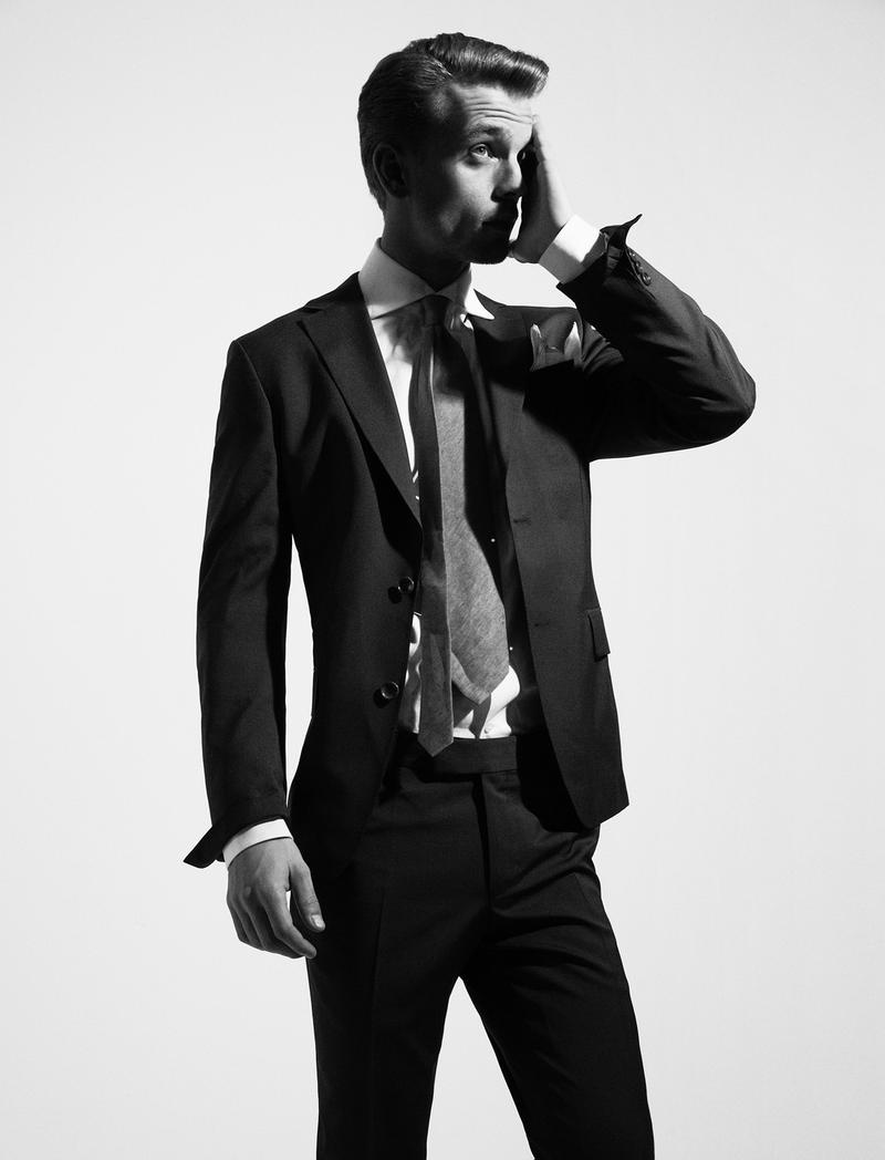 Suited Affair–Swedish model Benjamin Eidem graces the pages of local magazine King. Photographed by Jesse Laitinen, suiting is the focus as Benjamin poses for images in studio and outdoors. Much like Topman’s spring/summer 2014 suiting campaign, the editorial’s purpose is to remix the suit, showing the different ways it can be worn for the modern man. Maintaining monochromatic looks, the suit is reinterpreted as new essentials are injected into the mix, whether showcasing a sporty jacket or a leather shirt.