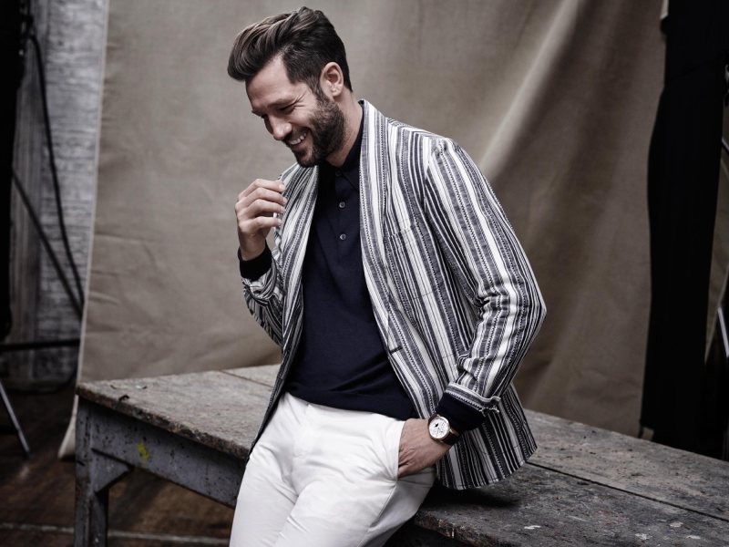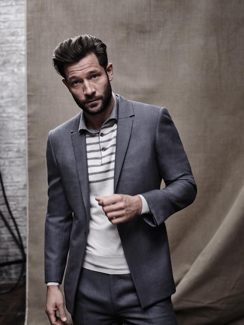 Showing a flair for the sartorial, John Halls recently graced the pages of The Rake. Reuniting with photographer Ben Harries, John is styled by Jo Grzeszczuk. Donning elegant fashions for the season, John’s dapper wardrobe includes suiting and sportswear from brands such as Giorgio Armani.