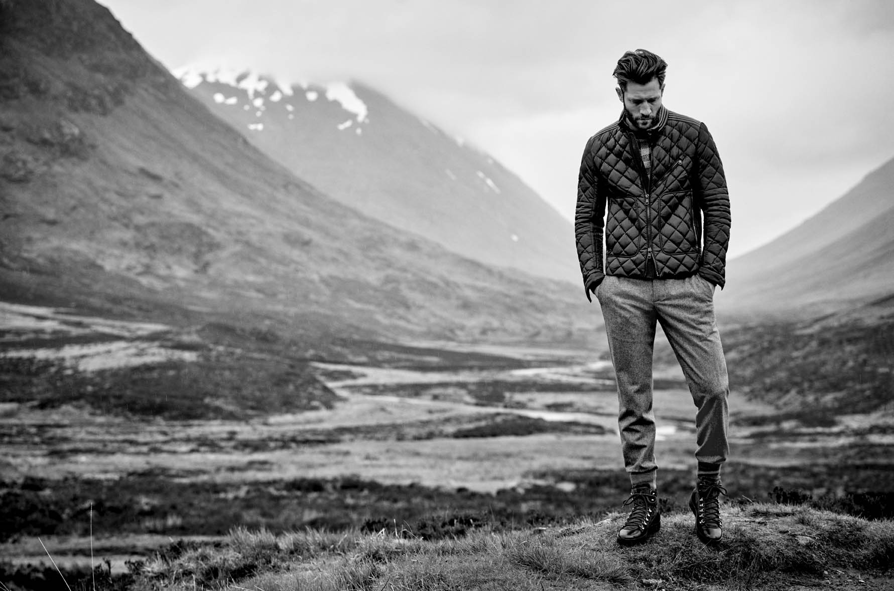 Bergdorf Goodman embraces highlander style for the first edition of Goodman’s Guide. Model John Halls connects with the luxury men’s retailer, heading outdoors in a mix of dapper and rugged fashions for the season. Seamlessly transitioning from one look to the next, John is pictured in a wardrobe of fur trimmed coats, thick cozy knits, hiking-style boots and more. Shop the selection and more at BergdorfGoodman.com.