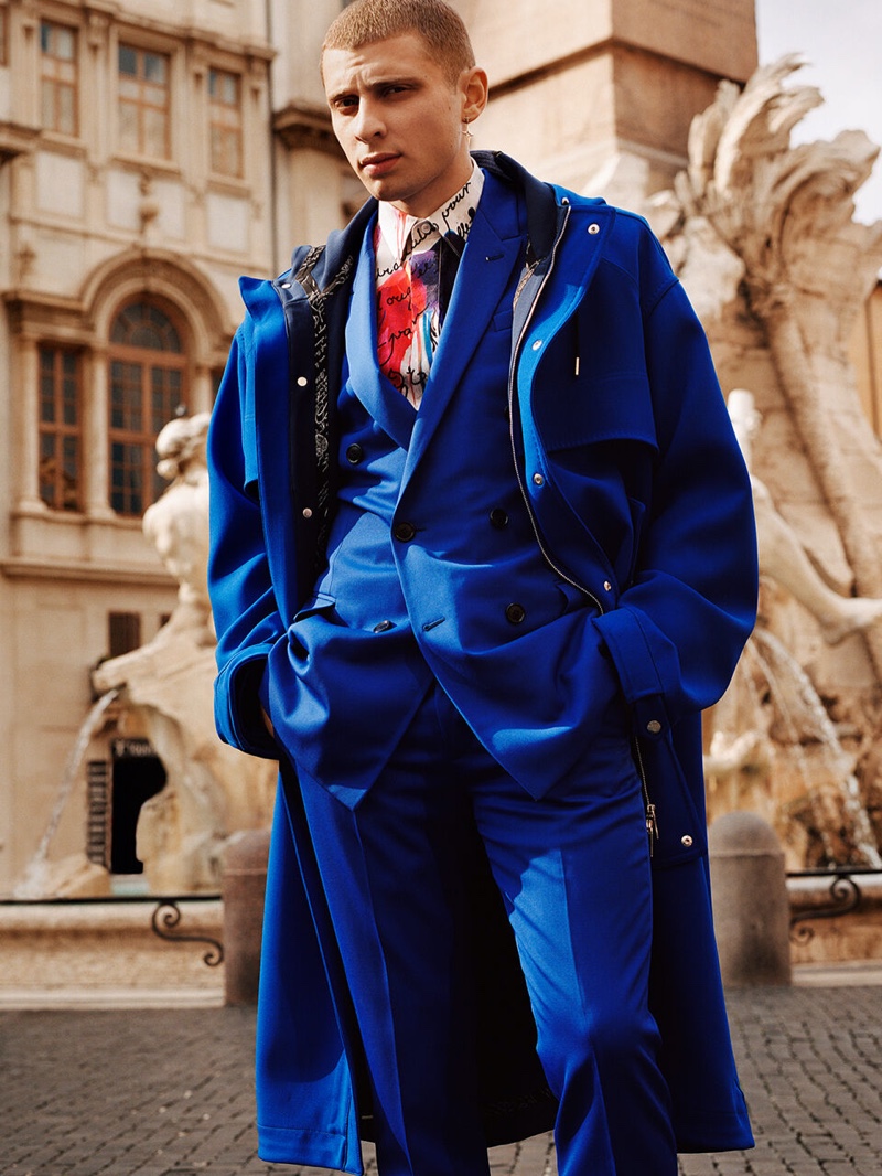 Berluti travels to Rome for its spring-summer 2020 campaign that features art direction by M/M (Paris). The fashion brand enlists British-Lebanese skateboarder and designer Blondey McCoy to front the outing. The 22-year-old reunites with photographer Alasdair McLellan for the advertisement. Mirroring the modern attitude of Kris Van Assche’s approach to tailoring, McCoy is quite the character in front of McLellan’s camera.