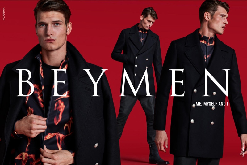 Beymen undoubtedly makes a splash with its fall-winter 2019 campaign. John Todd is not only the face of the season, but featured three times in each image. Hunter & Gatti photographs the British model in sleek menswear looks. Meanwhile, the advertisement’s wardrobe comes together under the direction of stylist Murat Turkili. Posing against a red backdrop, John inspires in tailored coats, sharp suits, and elevated sportswear. A dark color palette of black and gray make it easier to appreciate smart details such as the mixing of textures.