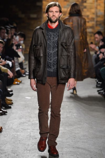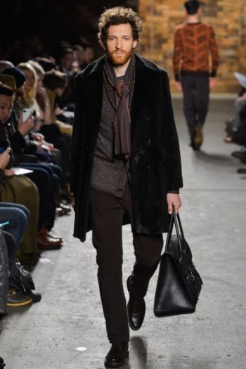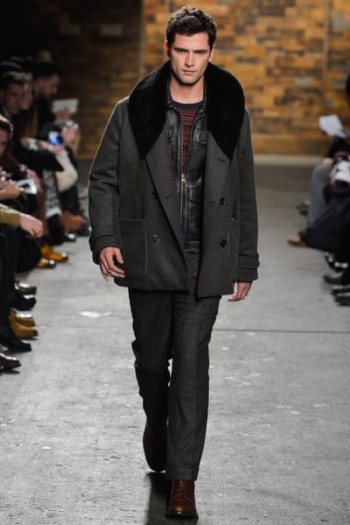 The Fine Rustic-Taking his inspiration directly from the fall season, a rustic, woodsy outing delivered Billy Reid’s latest creations. Taking core pieces such as cardigans, peacoats and pleated trousers in a more refined direction, Reid’s man created a formal statement. While overcoats were structured and cable-knit sweaters cut relaxed, leather and velvet finishes paved the way for evening looks, complete with satin and intricate prints.