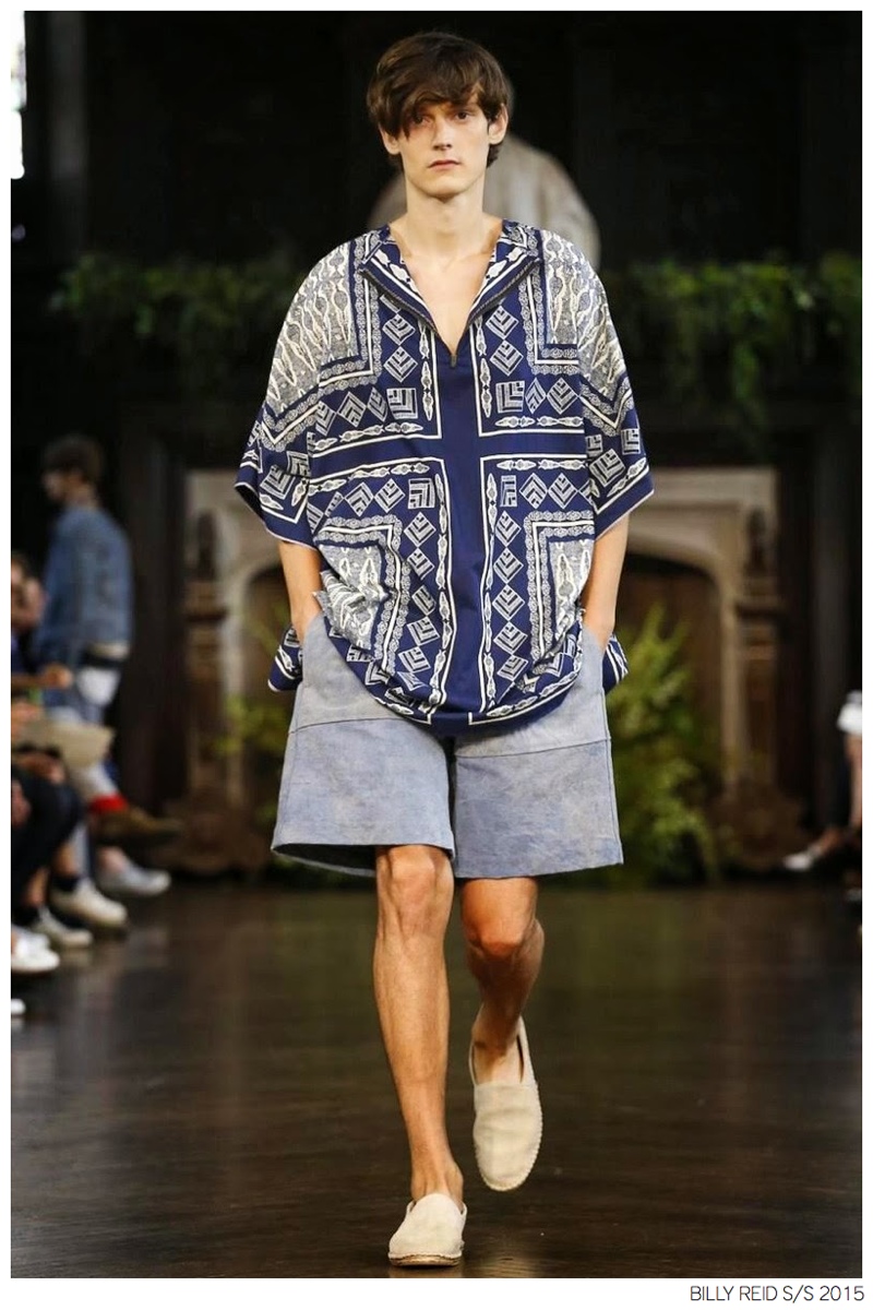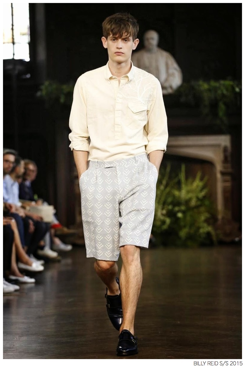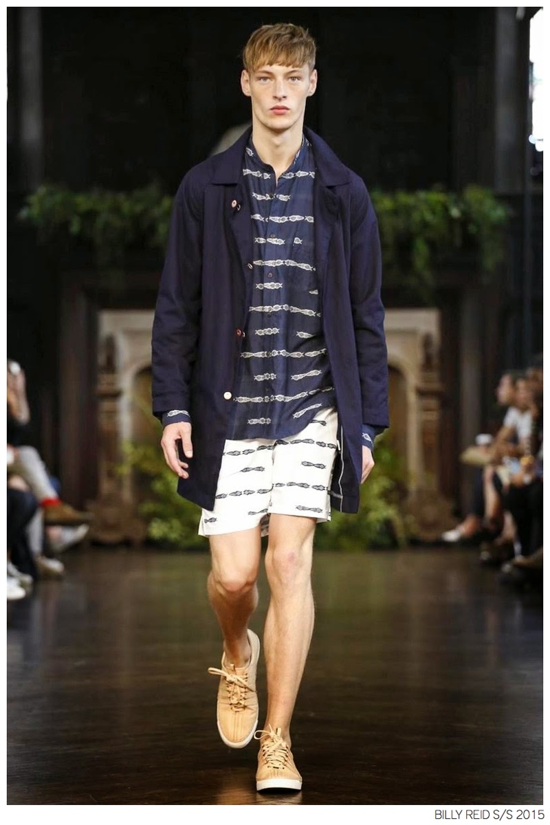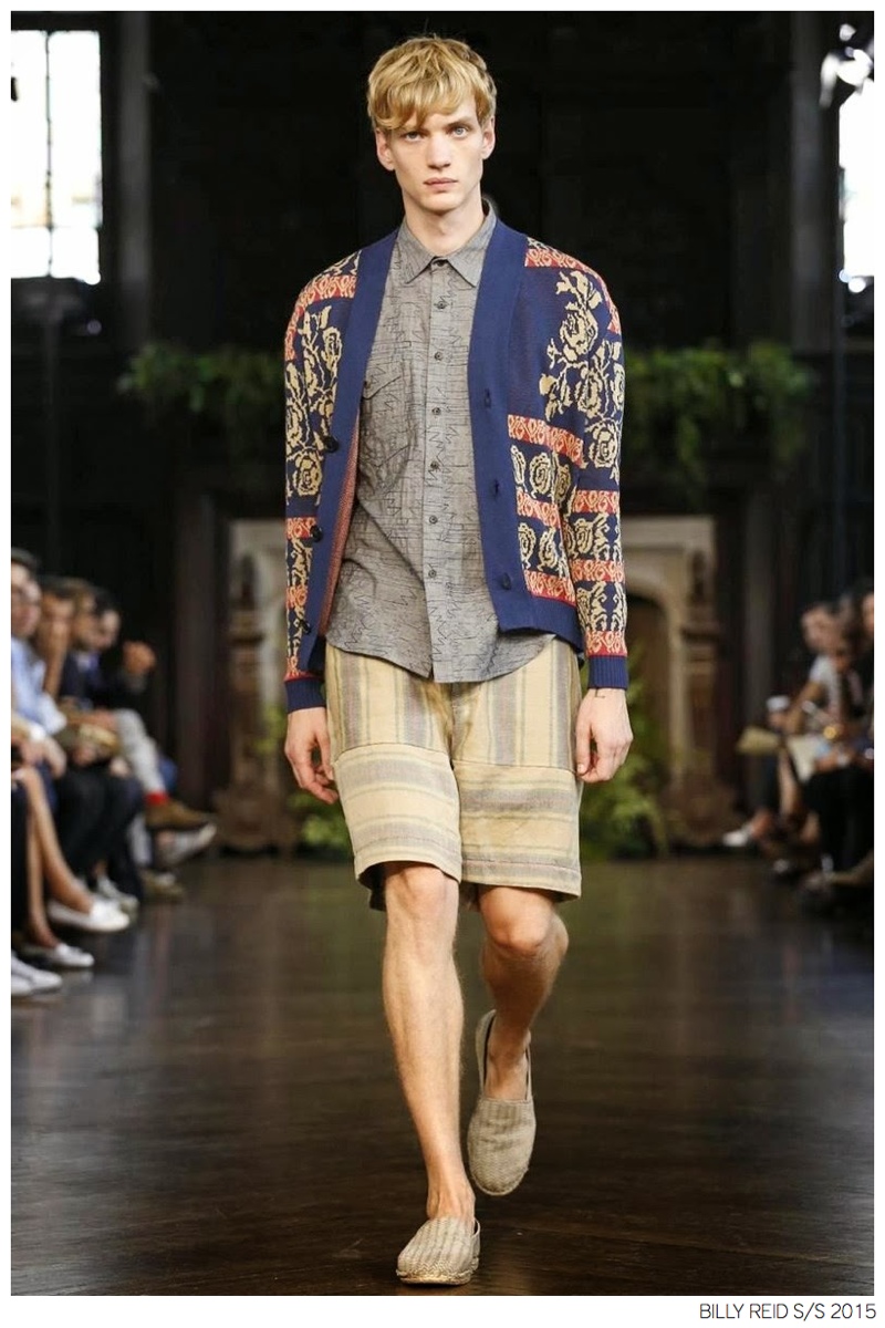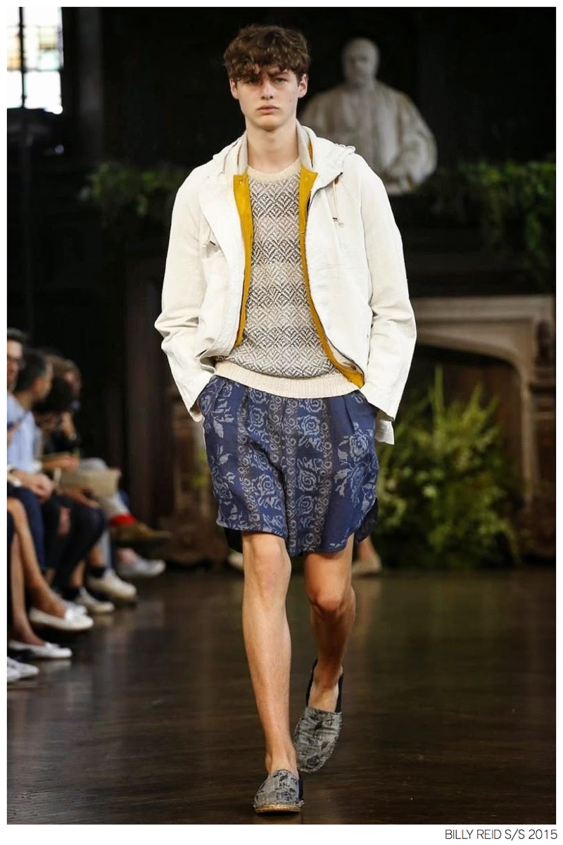 Billy Reid Spring/Summer 2015-Designer Billy Reid is on a roll when it comes to prints. Since the founding of his label, Reid has produced wearable garments with impeccable quality, but over the last couple of seasons, a new confidence has given has man exciting, intricate prints. Combined with relaxed silhouettes, Reid’s spring 2015 collection boasts a series of pleasant prints for a refreshing season of style. Here, unstructured coats are paired with slouchy knitwear and elongated, loose shirting. While trousers are semi-slim for breathable looks, shorts feature relaxed tailoring, pulling together a lineup that balances casual sentiments with a sophisticated finish.