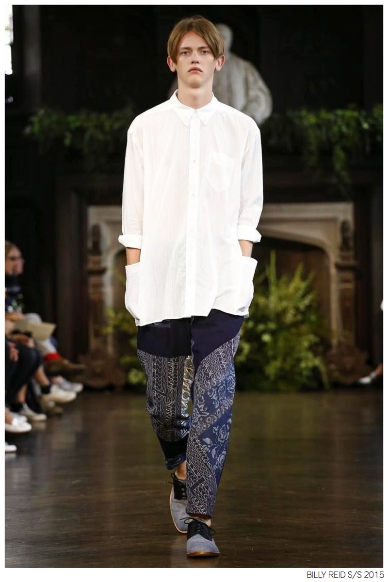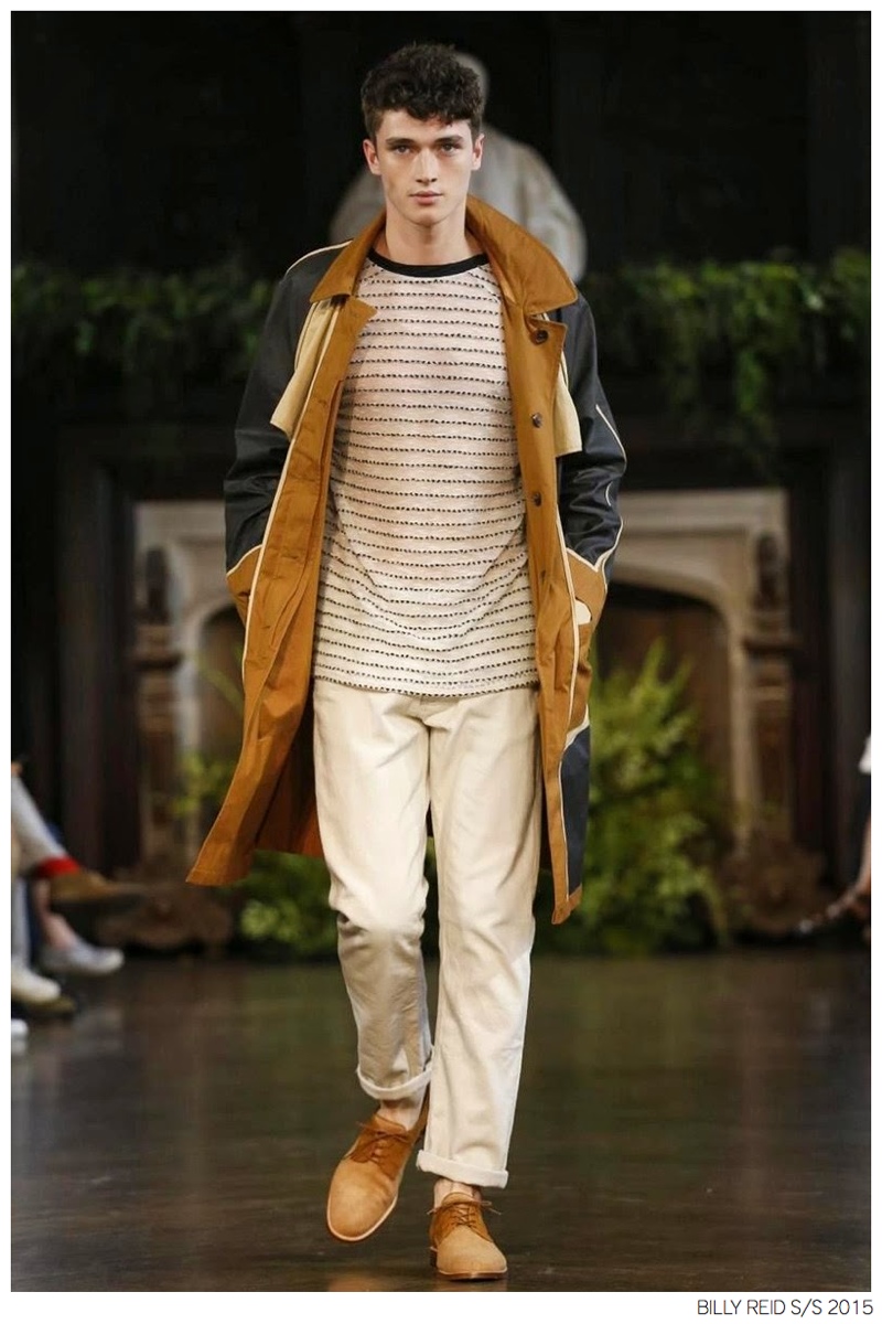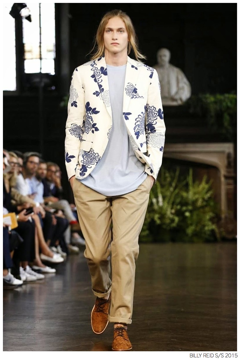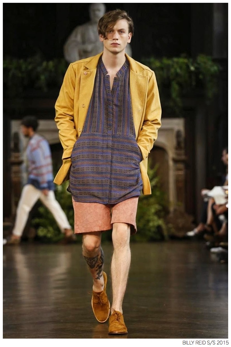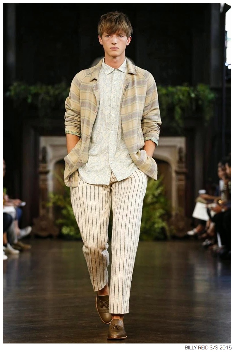 Billy Reid Spring/Summer 2015-Designer Billy Reid is on a roll when it comes to prints. Since the founding of his label, Reid has produced wearable garments with impeccable quality, but over the last couple of seasons, a new confidence has given has man exciting, intricate prints. Combined with relaxed silhouettes, Reid’s spring 2015 collection boasts a series of pleasant prints for a refreshing season of style. Here, unstructured coats are paired with slouchy knitwear and elongated, loose shirting. While trousers are semi-slim for breathable looks, shorts feature relaxed tailoring, pulling together a lineup that balances casual sentiments with a sophisticated finish.