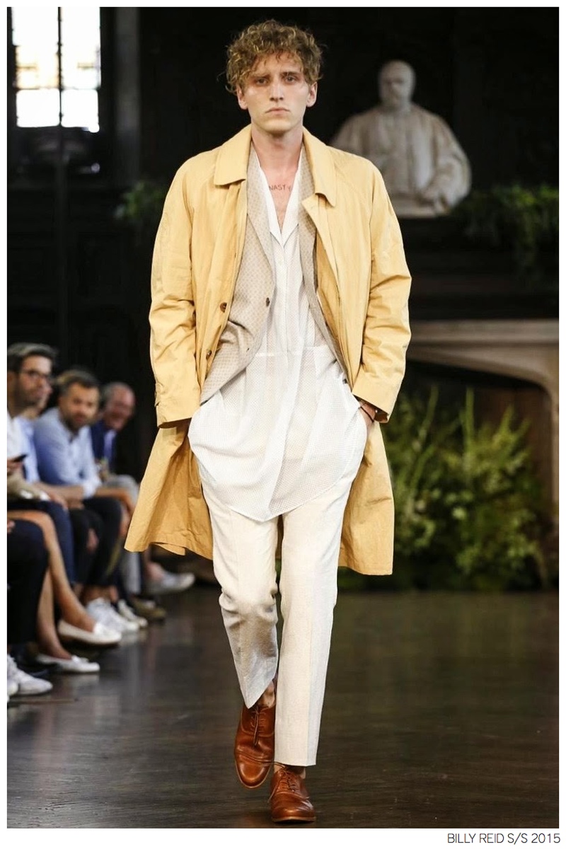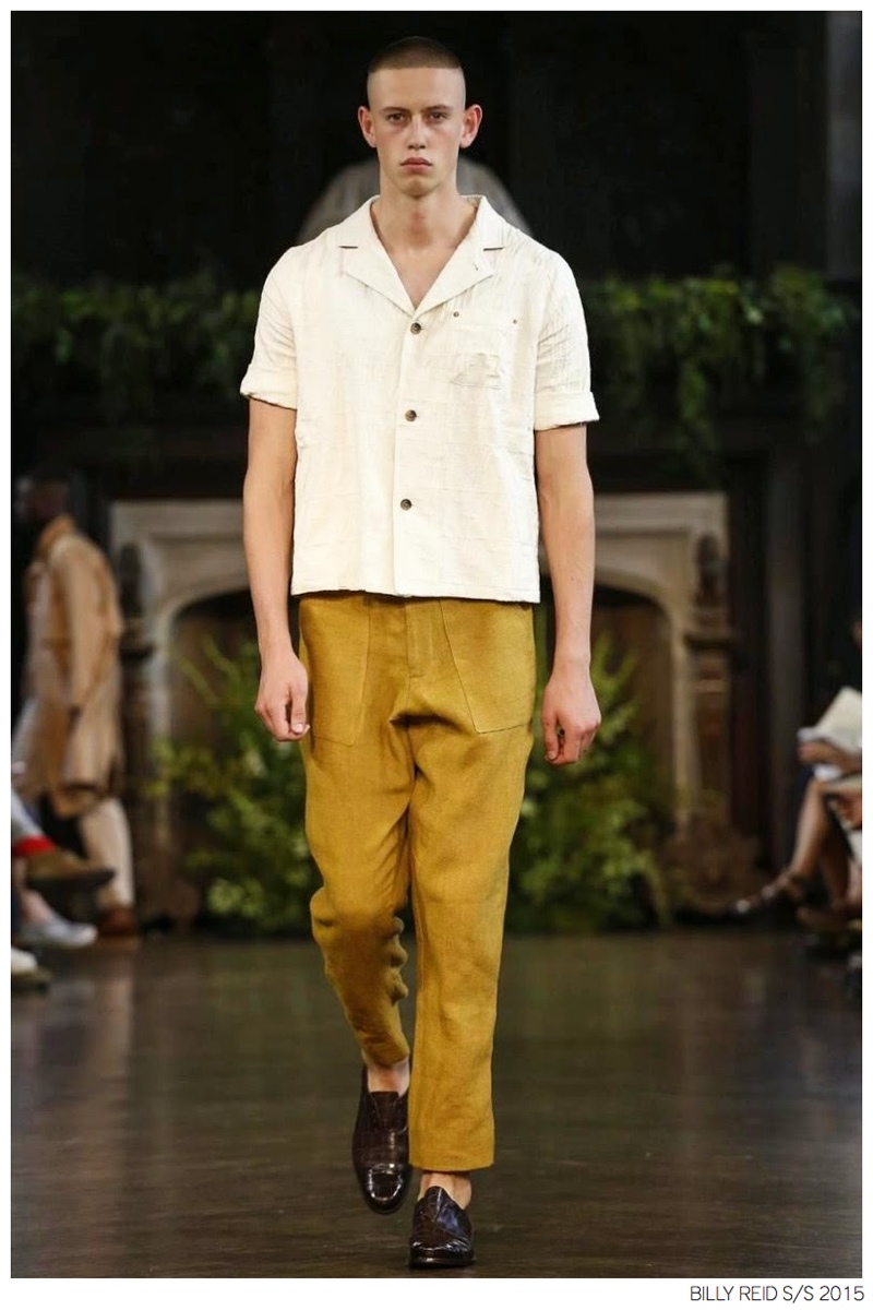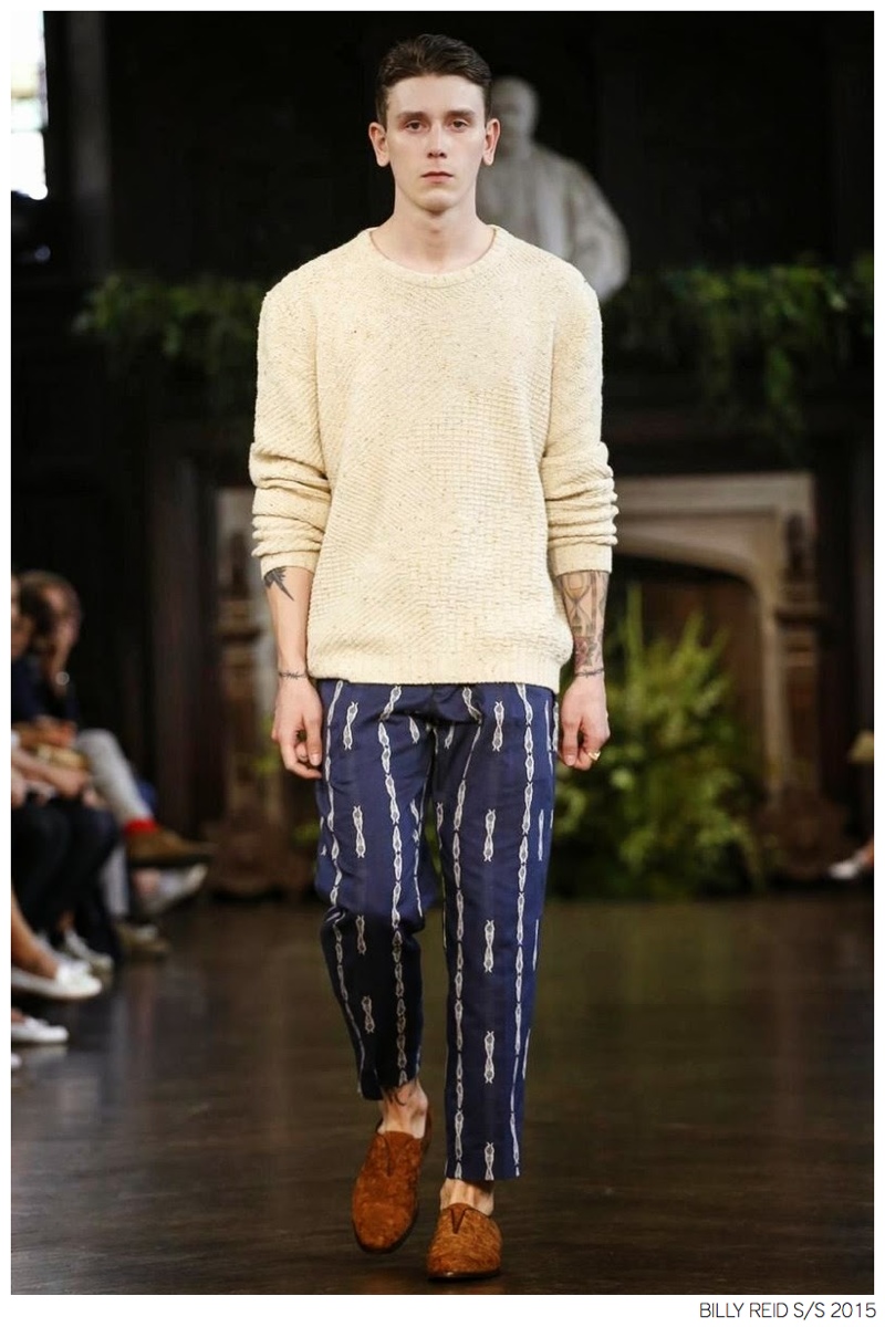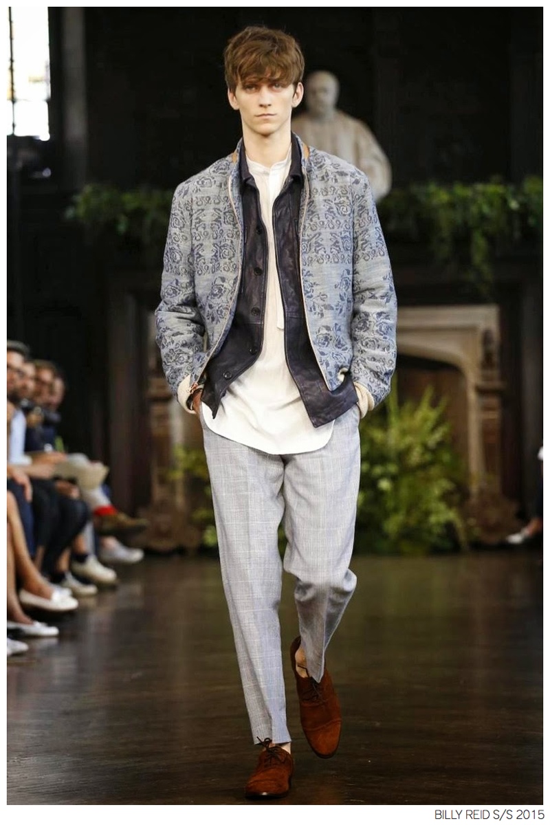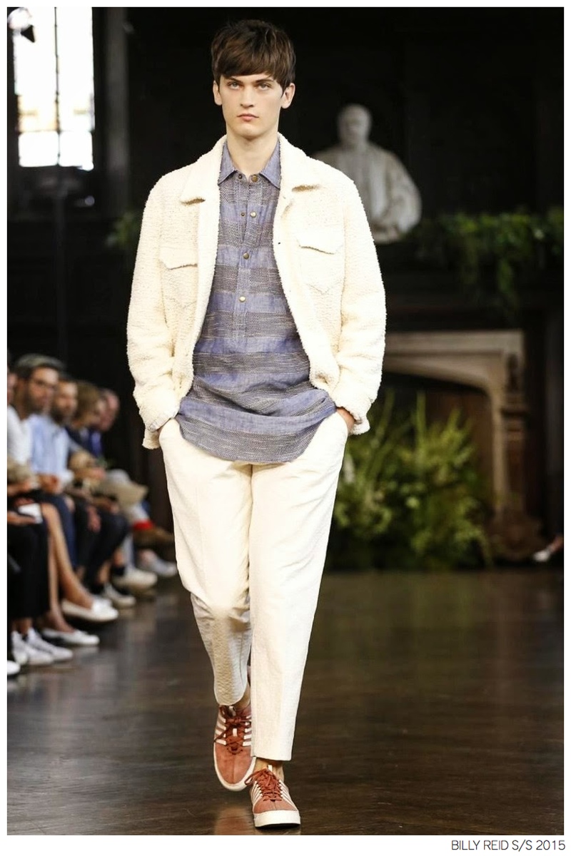 Billy Reid Spring/Summer 2015-Designer Billy Reid is on a roll when it comes to prints. Since the founding of his label, Reid has produced wearable garments with impeccable quality, but over the last couple of seasons, a new confidence has given has man exciting, intricate prints. Combined with relaxed silhouettes, Reid’s spring 2015 collection boasts a series of pleasant prints for a refreshing season of style. Here, unstructured coats are paired with slouchy knitwear and elongated, loose shirting. While trousers are semi-slim for breathable looks, shorts feature relaxed tailoring, pulling together a lineup that balances casual sentiments with a sophisticated finish.