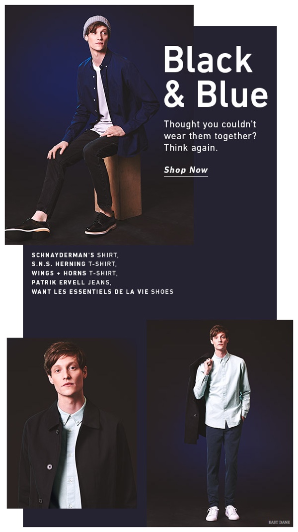 Black & Blue Looks Make for Stylish, Trendy Menswear Pairings from East Dane