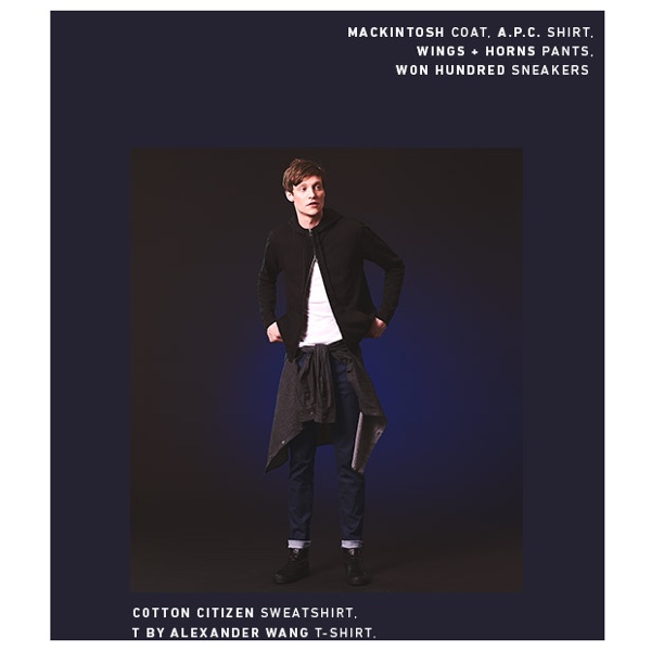 Reuniting with East Dane after modeling timeless styles, model Matthew Hitt is front and center once more with another stylish takeaway. Honing in on winning color combinations, East Dane spotlights black and blue. Offering an inspiring spin on spring arrivals, Matthew models choice black and blue pieces from trendy fashion labels that include Cheap Monday, Alexander Wang and AMI.