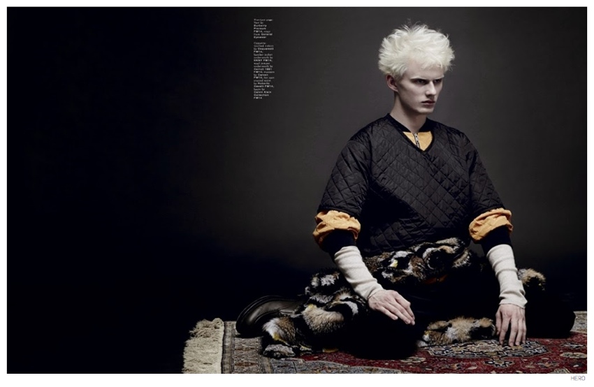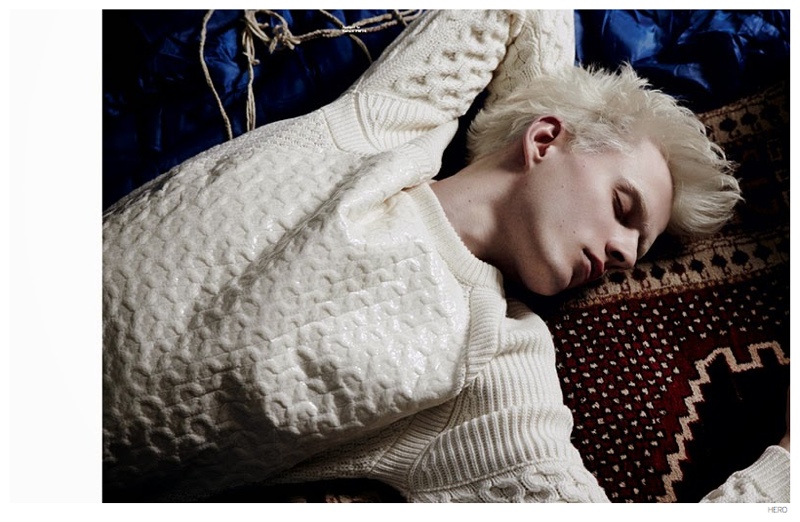 Bleached Blond, Karlis Adlers is Layered in Luxe Fall Fashions for HERO
