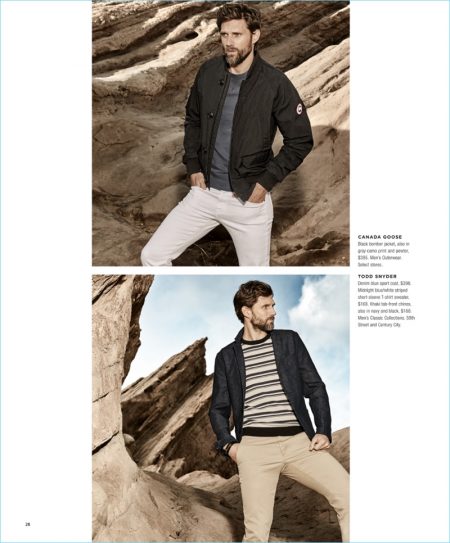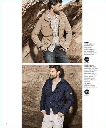 PinBloomingdale’s taps RJ Rogenski to model a look by Moncler. RJ rocks a Moncler coach’s jacket $545 with a camo print t-shirt $405. He also wears khaki chinos $345.