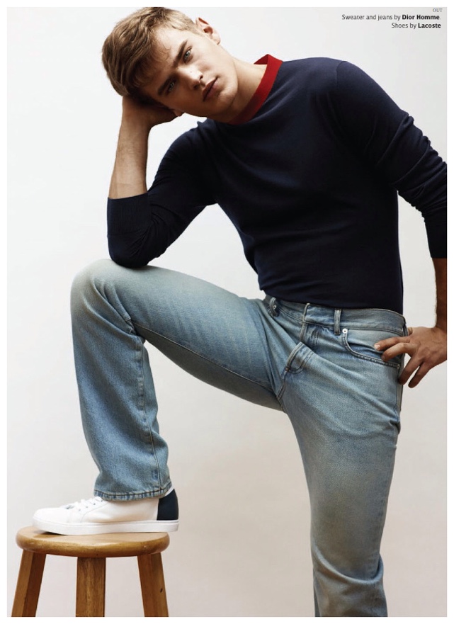 On the heels of a sporty style moment with Canadian retailer Simons, Swedish model Bo Develius graces the pages of OUT magazine. Photographed by Tetsu Kubota, Bo appears in the magazine’s May 2015 issue, embracing youthful denim looks. Outfitted by stylist Grant Woolhead, Bo doesn’t wear just any denim. He gets a luxe fix with denim fashions from the likes of Burberry Prorsum and Prada.