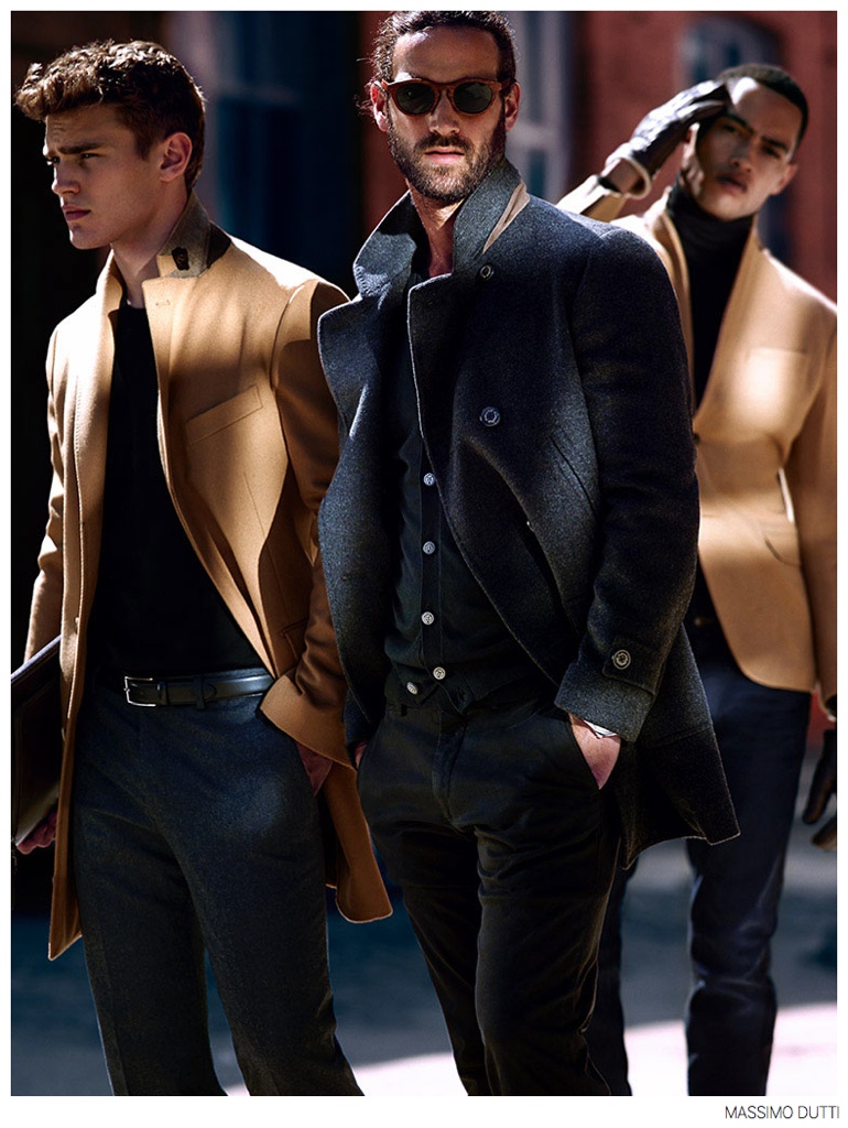 The Sharp Suit-Regular collaborators, photography team Hunter & Gatti reconnects with Massimo Dutti for a look at strong suiting and tailored outerwear options. Along for the chic ride are models Matthew Avedon, Bo Develius and Cameron Gentry. Showcasing sartorial styles with an urban twist, fine suiting pieces come together with leather jackets, quilted outerwear and other smart fall must-haves for a pleasant mix of styles. / Grooming by Jordi Fontanals. Light assistance by Carlos Babbler, Joan Vitores and Carlos Perez. Digital capture by Alvaro Robles.