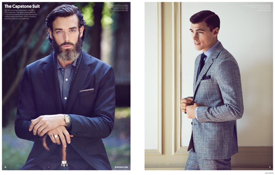 The Pursuit of Perfection–Bonobos highlights its fall 2014 suiting with a new catalogue lensed by photographer William Hereford (EH Management). Filling the luxurious leather shoes of dapper gentlemen, models Moose (Major New York), Richard B. (New York Model Management) and Filip (One Model Management) come together, donning choice tailored pieces. From the casualness of an everyday suit to the exquisite qualities of an evening jacket that fits just right, Bonobos lays out the perfect essentials for the modern man of style. / Art direction by Sean Sutherland. Grooming by Scott McMahan.