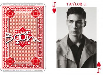 Boom–Presenting their boys as a deck of cards, Milano-based modeling agency Boom reveals their lineup for the spring/summer 2014 season. Ready for the busy season of castings for a shot at Milan Fashion Week, Boom houses great faces such as Chris Arundel, Hans Hatt and Vince Harrington.