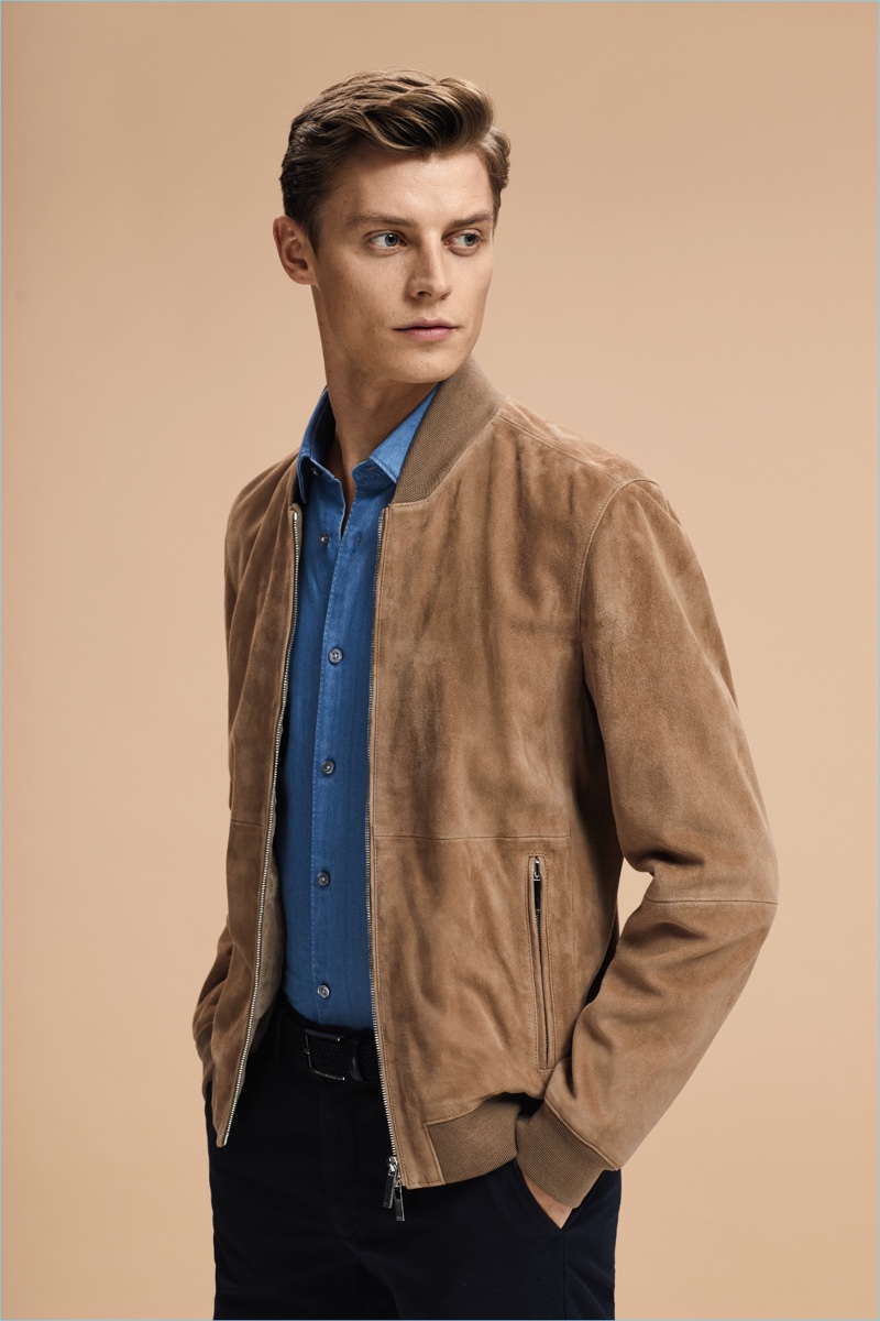 PinModel Janis Ancens dons a smart suede bomber jacket with a printed button-down shirt, distressed denim jeans, and sneakers from BOSS Hugo Boss.PinBOSS Hugo Boss enlists Janis Ancens to showcase its spring essentials, which include a navy sport coat and crewneck sweater.PinLeading model Janis Ancens sports a suede bomber jacket with a polo shirt, slim-fit pants, and sneakers by BOSS Hugo Boss.PinGoing casual, Janis Ancens wears a bomber jacket with a smart shirt, trendy joggers, and sneakers.PinCutting a lean shape, Janis Ancens wears a fitted shirt with dark wash denim jeans from BOSS Hugo Boss.