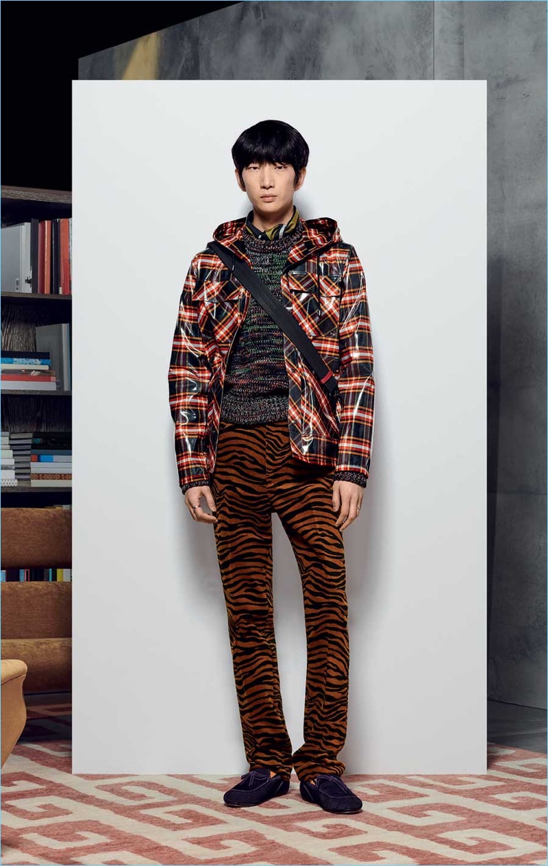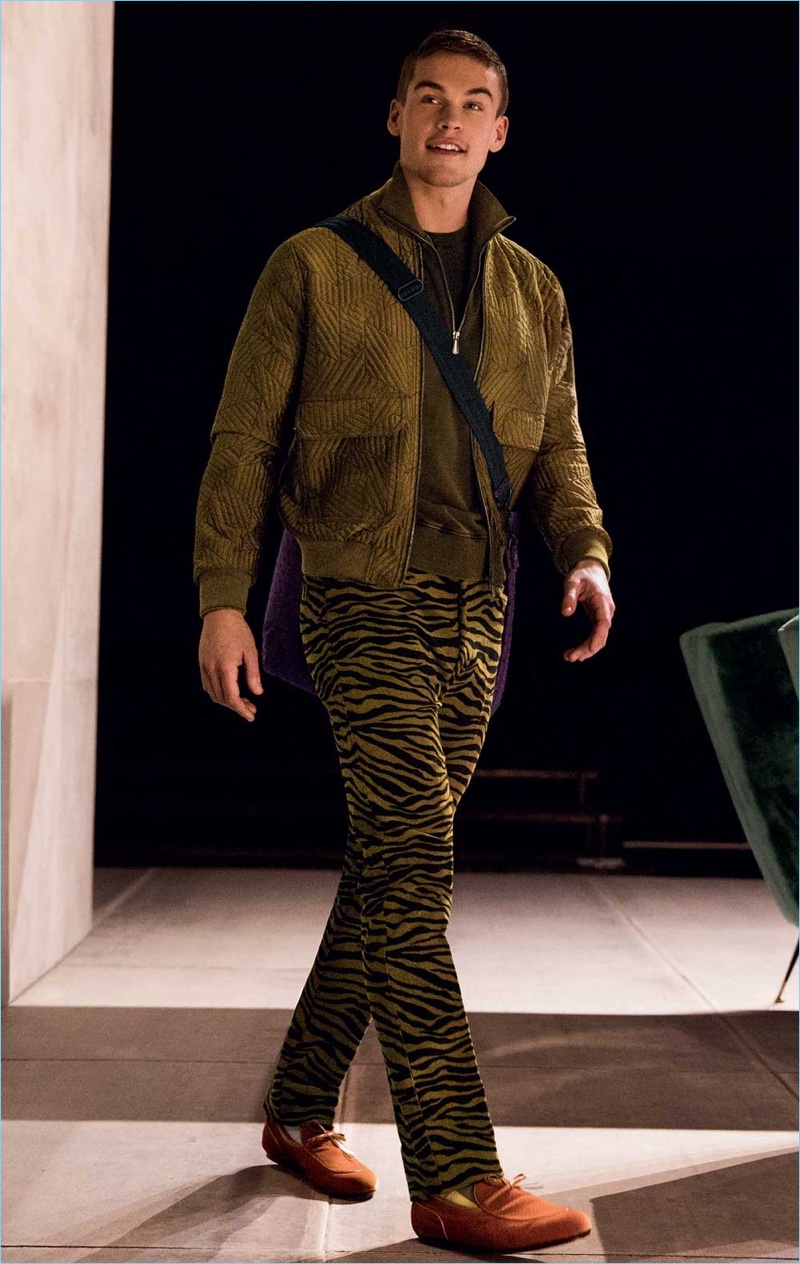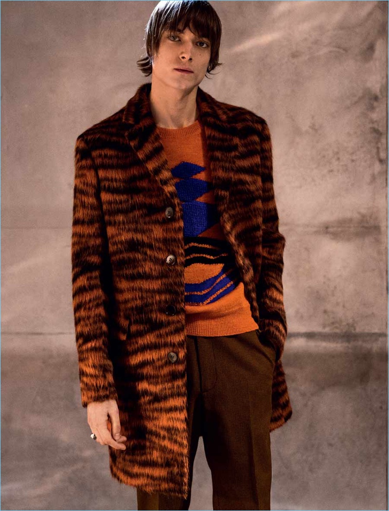 Bottega Veneta multi-tasks as the label uses the cast from its fall-winter 2018 show for the season’s accompanying catalog. Models such as Simon Nessman, Dylan Fender, and Alpha Dia make an appearance for the occasion. The top models wear the Italian label’s fashions that juxtapose sharp tailoring with bold animal prints. From knitwear to tailoring, Bottega Veneta also serves up rich autumnal hues. The lineup also includes leather bags that can be personalized.