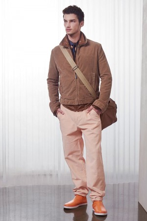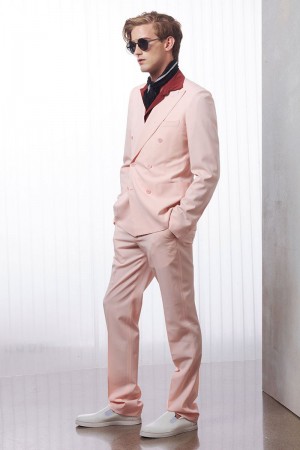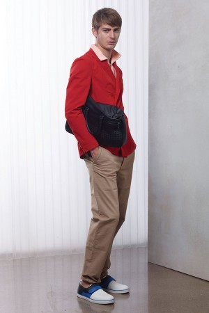 Bottega Veneta creative director Tomas Maier plays with the bold fiery nature of red and softer nude tones for the fashion house’s first look at cruise 2016. Models Ben Allen, Edward Wilding, Filip Hrivnak and Max Rendell are enlisted to showcase Maier’s designs, embracing a confident cool in relaxed suiting and timeless sportswear pieces like the rich, brown suede jacket. Bottega Veneta’s effortless mix of casual and semi-formal fashions are finished with velcro fastened sneakers for a touch of desired quirk.