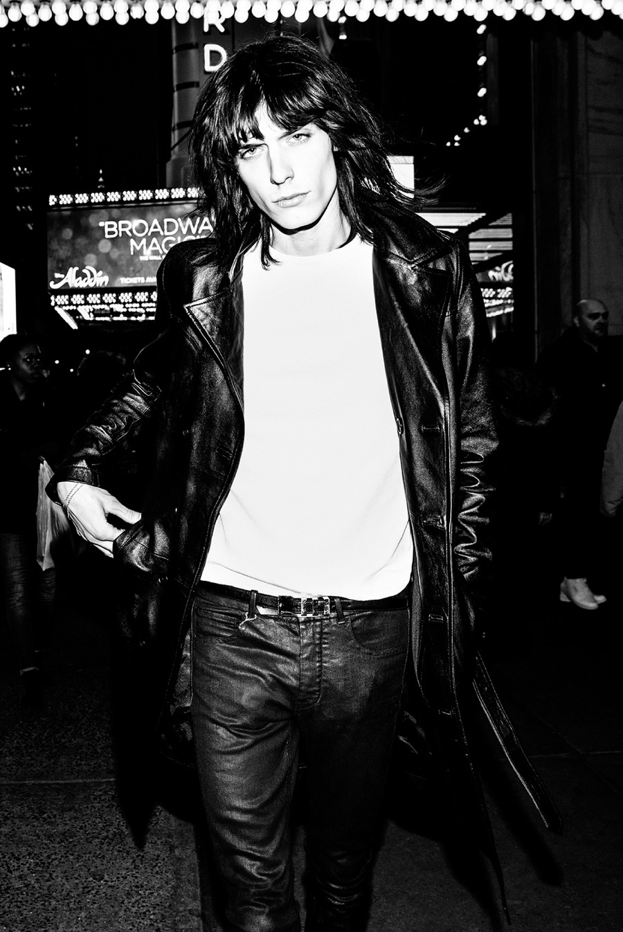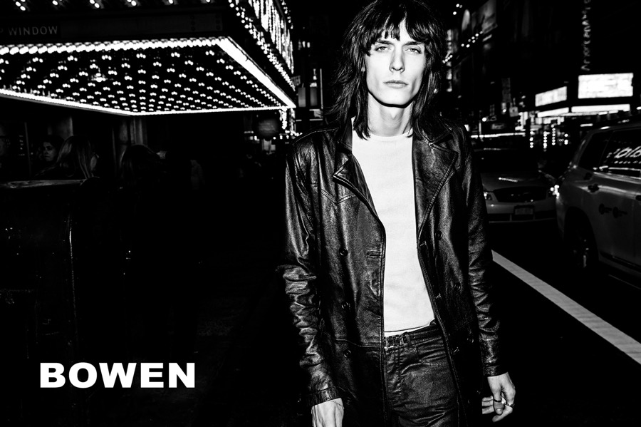 Bowen finds its latest campaign star in Justin Gossman. Visiting New York for its fall-winter 2016 advertisements, Bowen gravitates towards black for the season. Justin takes the city by storm, captured in images by photographer Nacho Ricci. Clad in leather and denim, Justin is a cool vision in medium length coats, skinny jeans and short jackets.