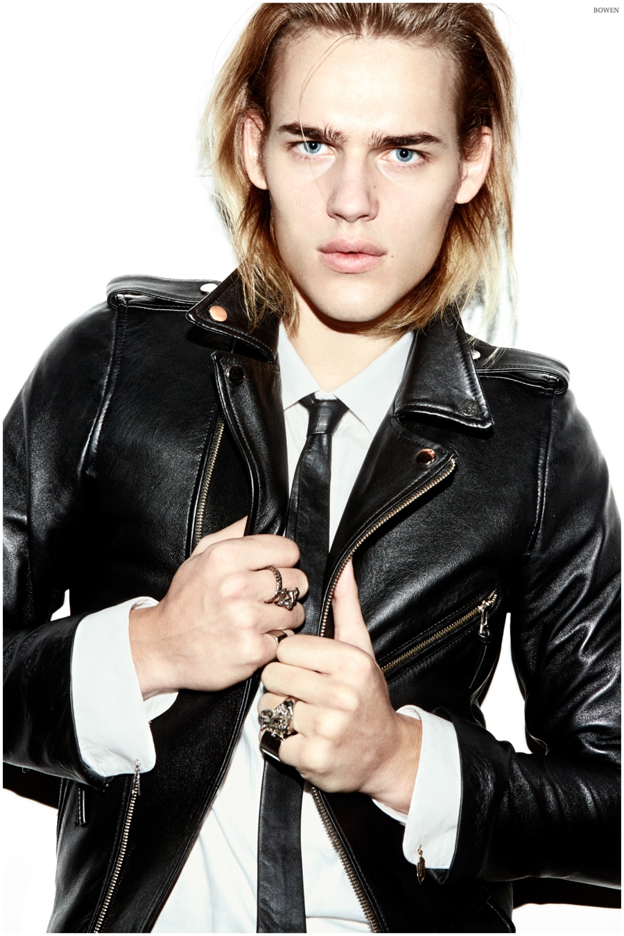 Ton Heukels follows in the footsteps of Keno Weidner as he fronts the fall-winter 2015 advertising campaign of Bowen. The new outing is entitled Bowen Rocks and is inspired by classic rock & roll with a British influence. Embracing dark skinny jeans and leather with scarves, Bowen channels the energy of iconic acts like The Rolling Stones, who Ton himself enjoys. / Photography by Nacho Ricci.