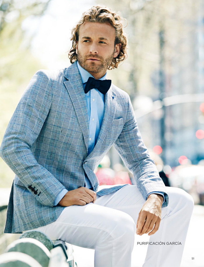 First Look–Top model Brad Kroenig is enlisted by El Palacio de Hierro to model a smart lineup of wardrobe options for the season. Connecting with photographer Dean Isidro (Atelier Management), Brad spends a lovely day out. From the preppy trappings of a plaid blazer and simple black bow-tie to the sportiness of a field green jacket from Armani Jeans or pair of G-Star Raw Jeans, Brad makes smart fashion decisions. / Grooming by Moiz. Production by A+ Productions.