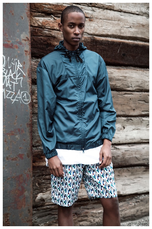 Danish fashion label Brand8 enlists photographer Marco van Rijt to shoot pieces from its spring-summer 2015 menswear collection. Front and center for the new images is Scoop model Ezra Shami. Embracing a relaxed style motif that calls to mind the sporty fashions of the 90s, Ezra is captured in laid-back photos that feature printed shorts, windbreakers, shirt jackets and deconstructed suiting, among other active pieces.