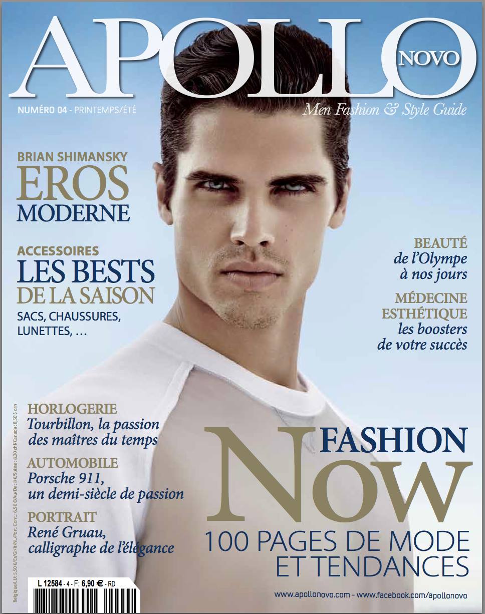 A Sporty Attitude–Success model Brian Shimansky covers the spring/summer issue of Apollo Novo, appearing before the lens of Urivaldo Lopes. Posing against a clear blue sky, the American model is styled by Fleur Huyhn Evans in a simple sweatshirt, emphasizing the seasonal trend of luxury sportswear.