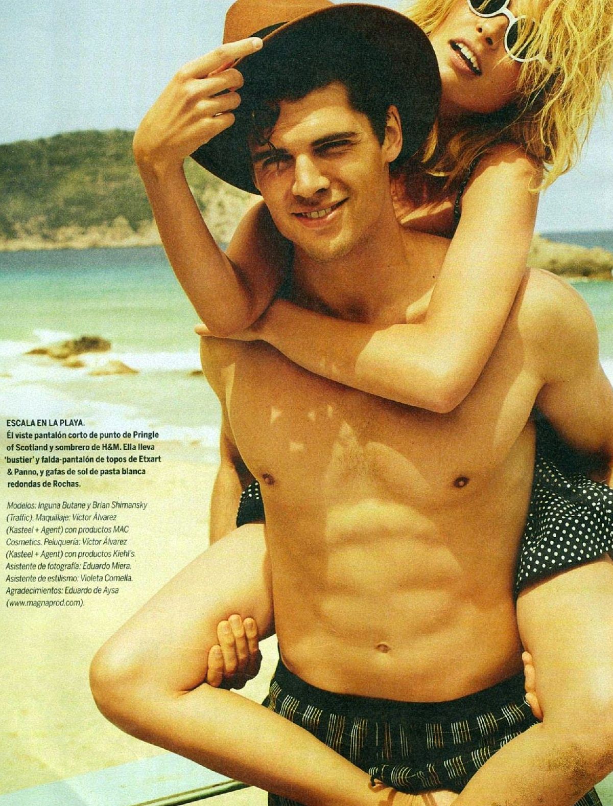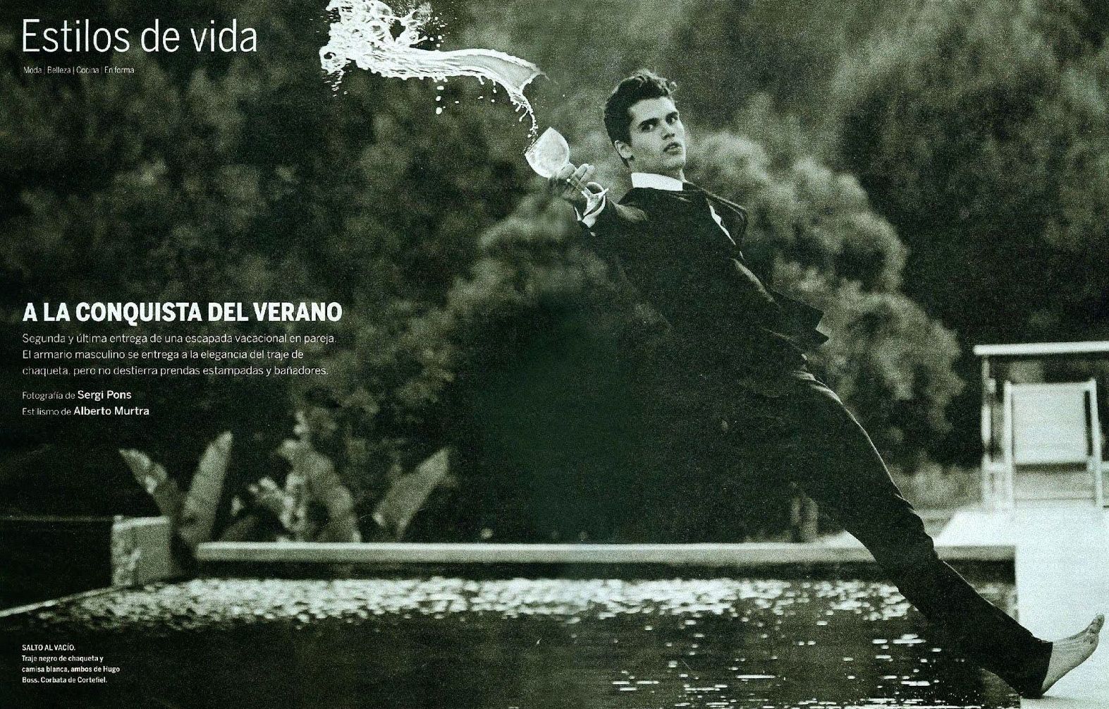 Positive Spin–Photographed by Sergi Pons for Spanish magazine El País Semanal, model Brian Shimansky is in a cheerful mood, enjoying a few moments of relaxation under the sun. Styled by Alberto Murtra in fashionable swimwear pieces or in more casual designs, without renouncing the elegant appeal of a tailored suit, the Versace Eros model knows how to spend summer the best way, without looking out of fashion. / Photography assistance by Eduardo Miera. Styling assistance by Violeta Comella. Grooming by Victor Álvarez.