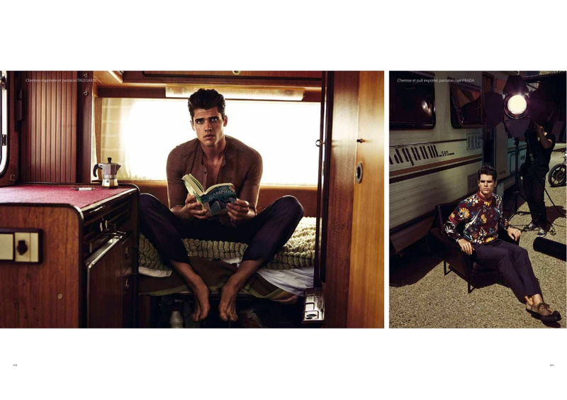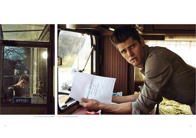 On Set–Photographed by Urivaldo Lopes, model Brian Shimansky stars in a new editorial for Apollo magazine. Playing actor for the day, Brian is captured on set in spring/summer 2014 looks pulled together by stylist Fleur Huynh Evans. Keeping his cool on a set with many moving components, Brian is on trend with ensembles from Dolce & Gabbana, Ermengildo Zegna and more. / Art direction by Fleur Huynh Evans.