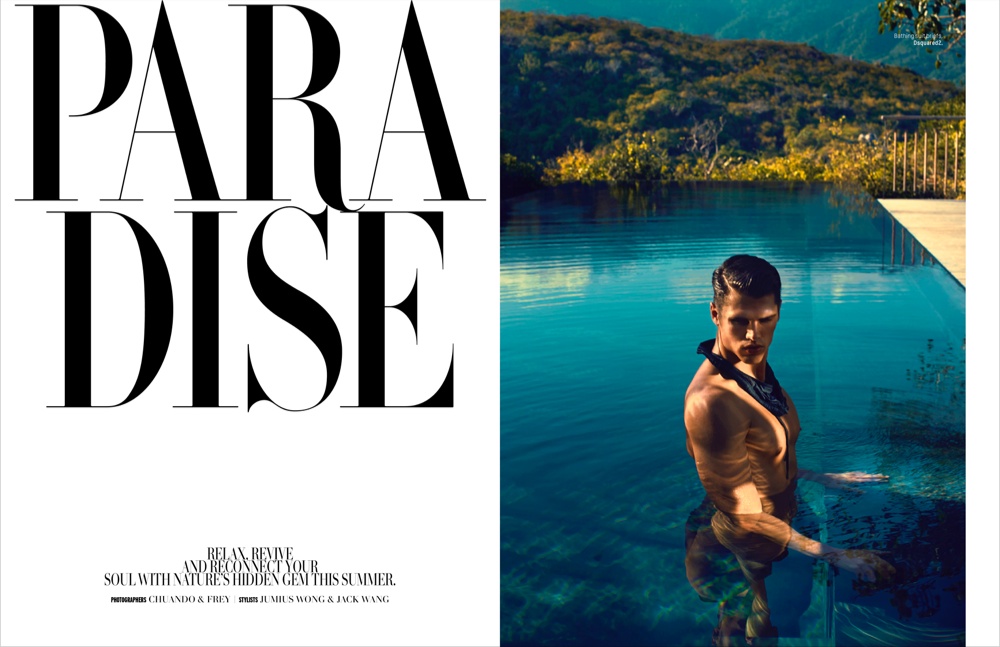 Paradise–Model Brian Shimansky is an incredible vision, gracing 28 stunning pages for the latest issue of L’Officiel Hommes Singapore. Photographed for the cover story by photographers Chuando & Frey, Brian takes in a summer paradise, appearing to be at ease as he shows off a chiseled form. Lounging in swimwear and relaxed separates, Brian is an effortless image of luxury with the aid of stylists Jack Wang and Jumius Wong. / Grooming by Rick Yang.