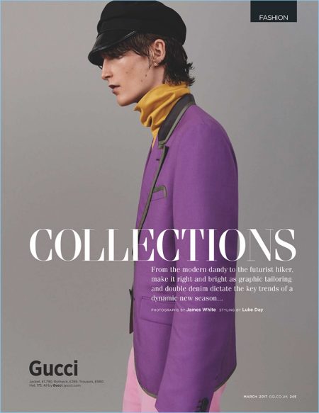 Approaching its March issue, British GQ celebrates the diversity of the spring-summer 2017 collections. Photographer James White and stylist Luke Day join creative forces for the outing. Day puts the spotlight on eclectic looks, which range from Prada’s hiking inspired narrative to smart tailoring by Canali. Bringing life to the story, models Serge Rigvava, Jack Chambers (Elite London), Mason Guido (AMCK), Do Byungwook (Select), Bom Lee, Tim Dibble (Models 1), Kesse Donkor (Premier), Aubrey (IMG), and Fionnan (Next) star in the editorial.