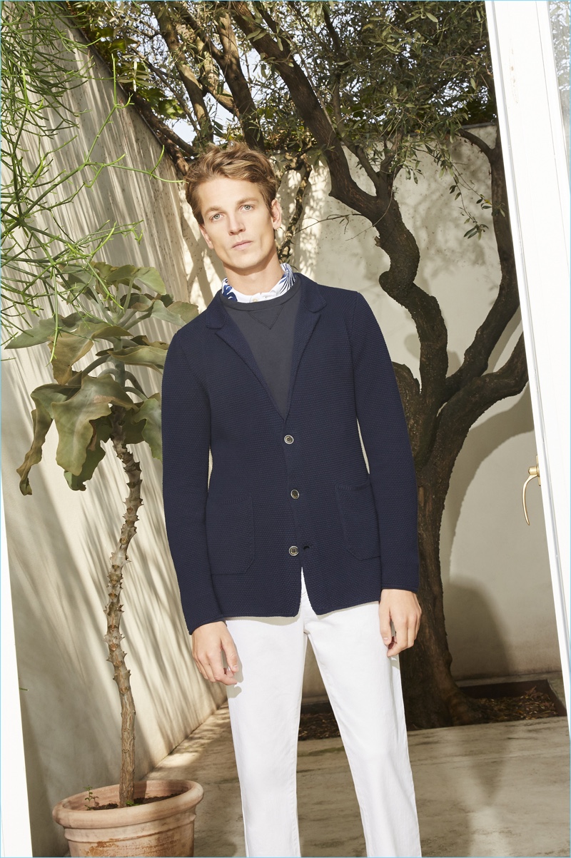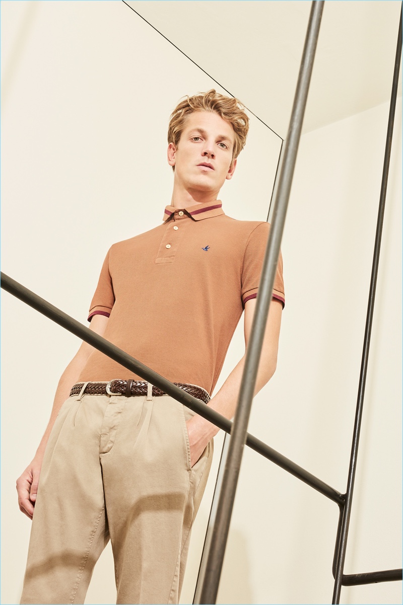 Brooksfield enlists Hugo Sauzay as the star of its spring-summer 2018 lookbook. The French model warms up to the label’s latest styles as he connects with photographer Tassili Calatroni. Posing for casual images, Hugo dons a smart wardrobe. It’s here that Matteo Greco styles Hugo in chic pieces that range from polo shirts and chinos to linen tops. Approaching the season, Brooksfield charms with a dusty color palette that’s ideal for a summer afternoon.