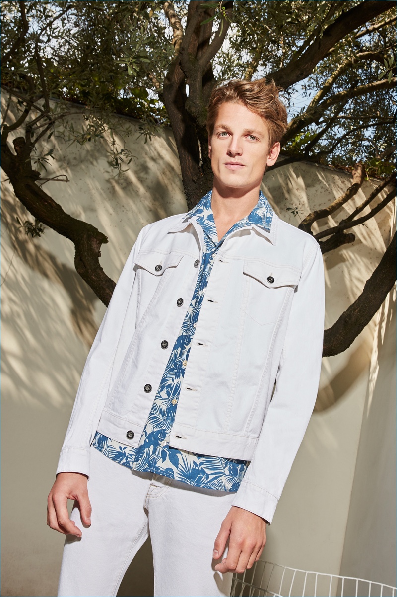 French model Hugo Sauzay sports a look from Brooksfield’s spring-summer 2018 collection.